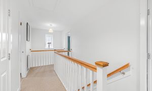 With access to all bedrooms, loft entry point, airing cupboard, radiator, and front-facing window.