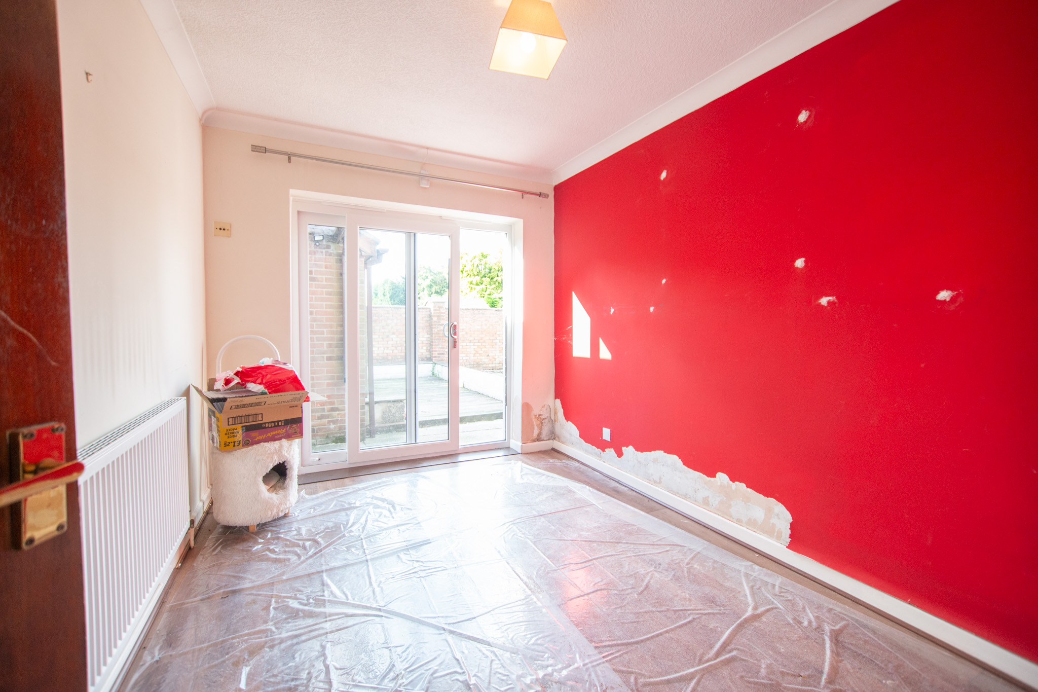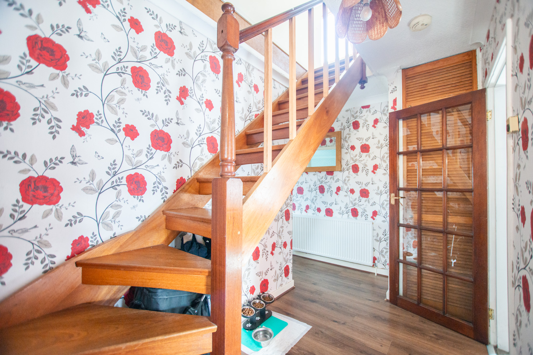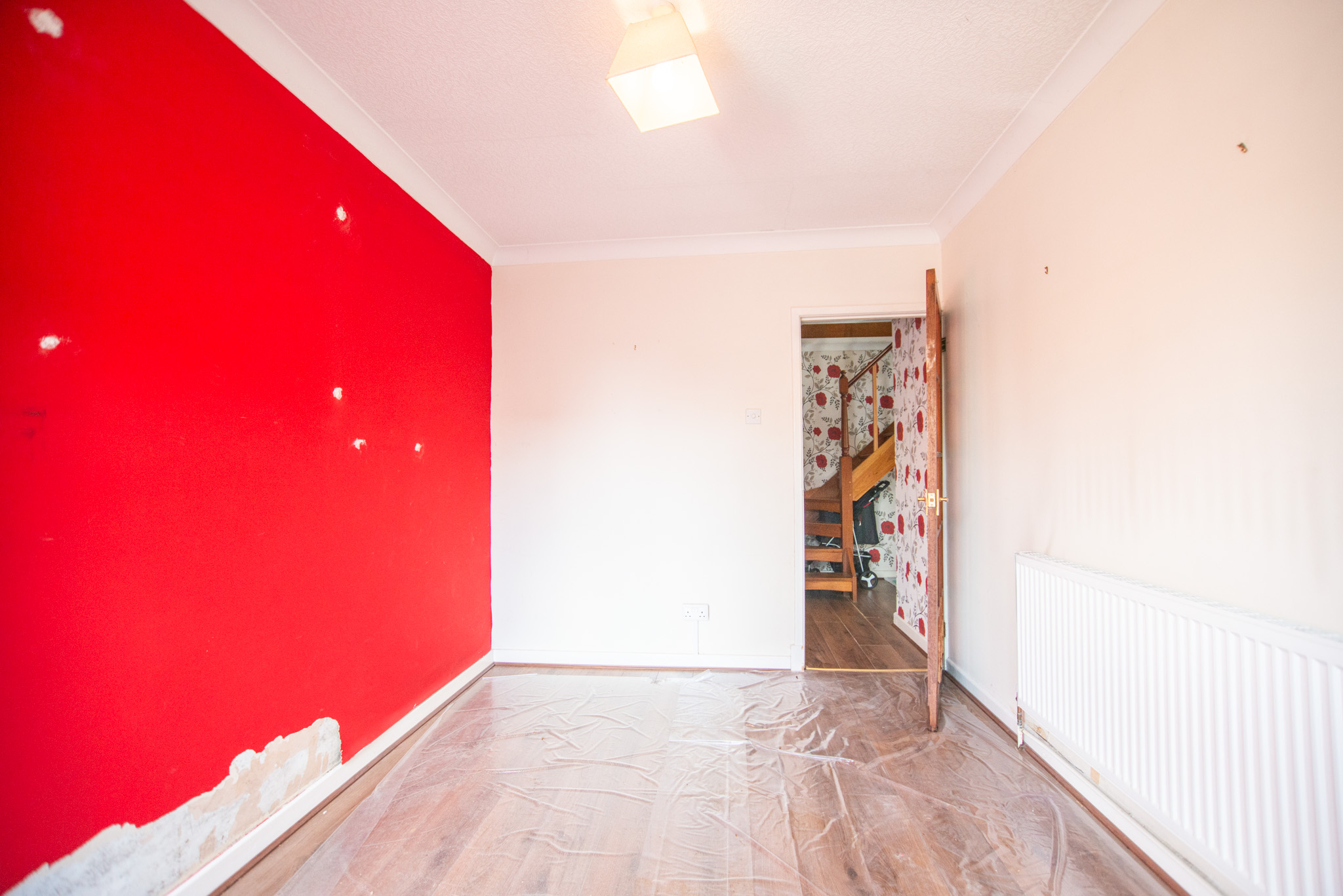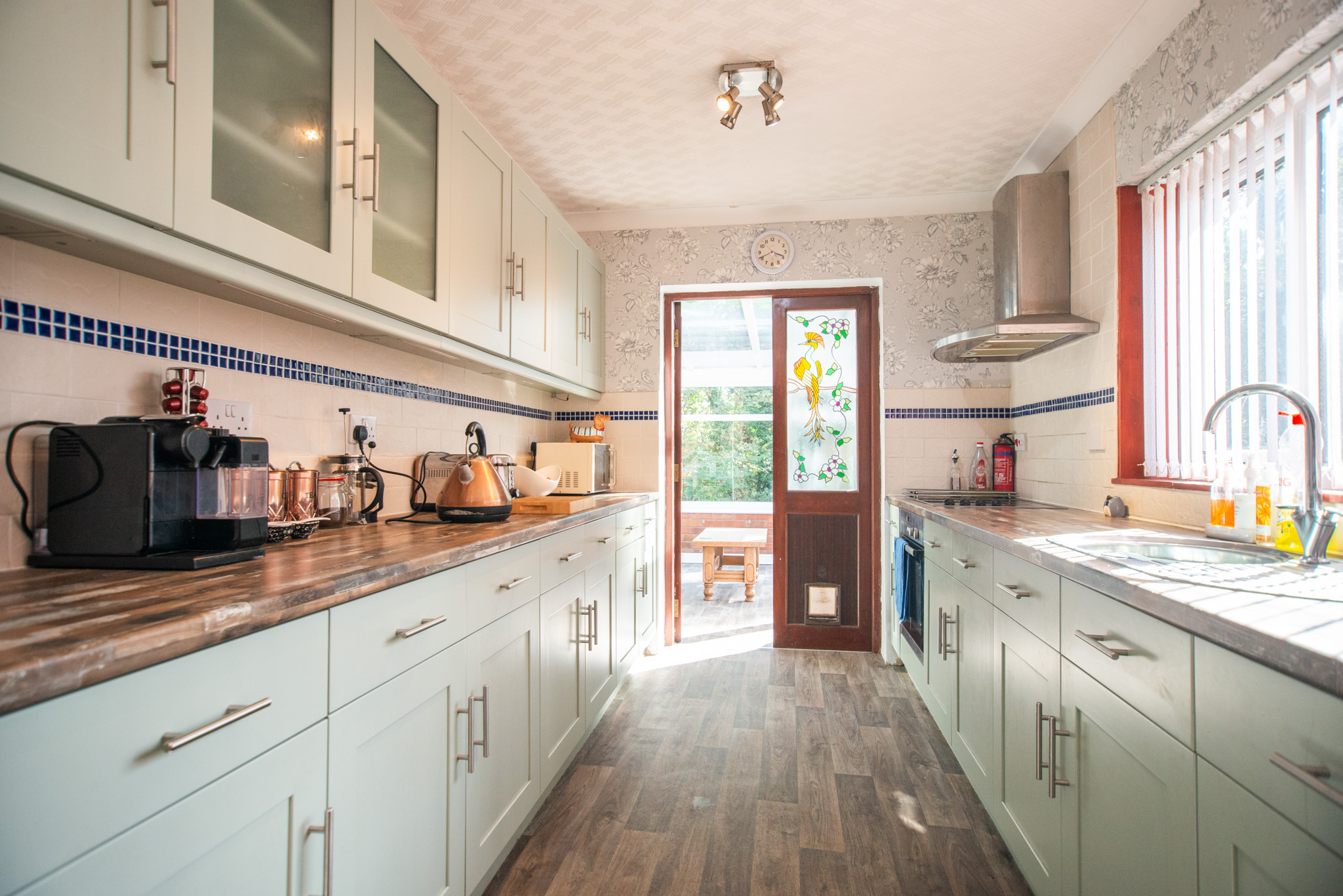 With laminate flooring, oven, hob, extractor, sink and tap, radiator, large window