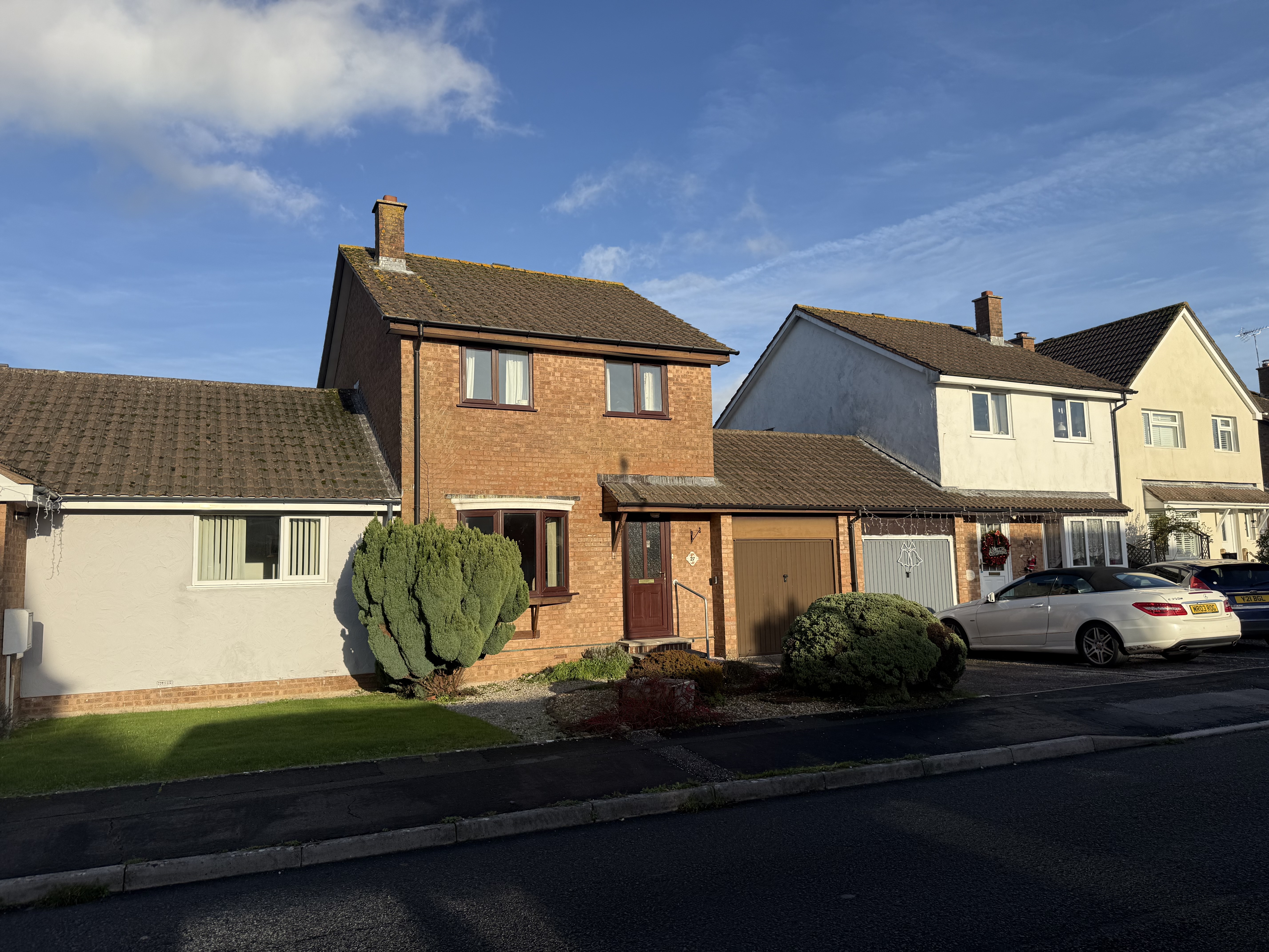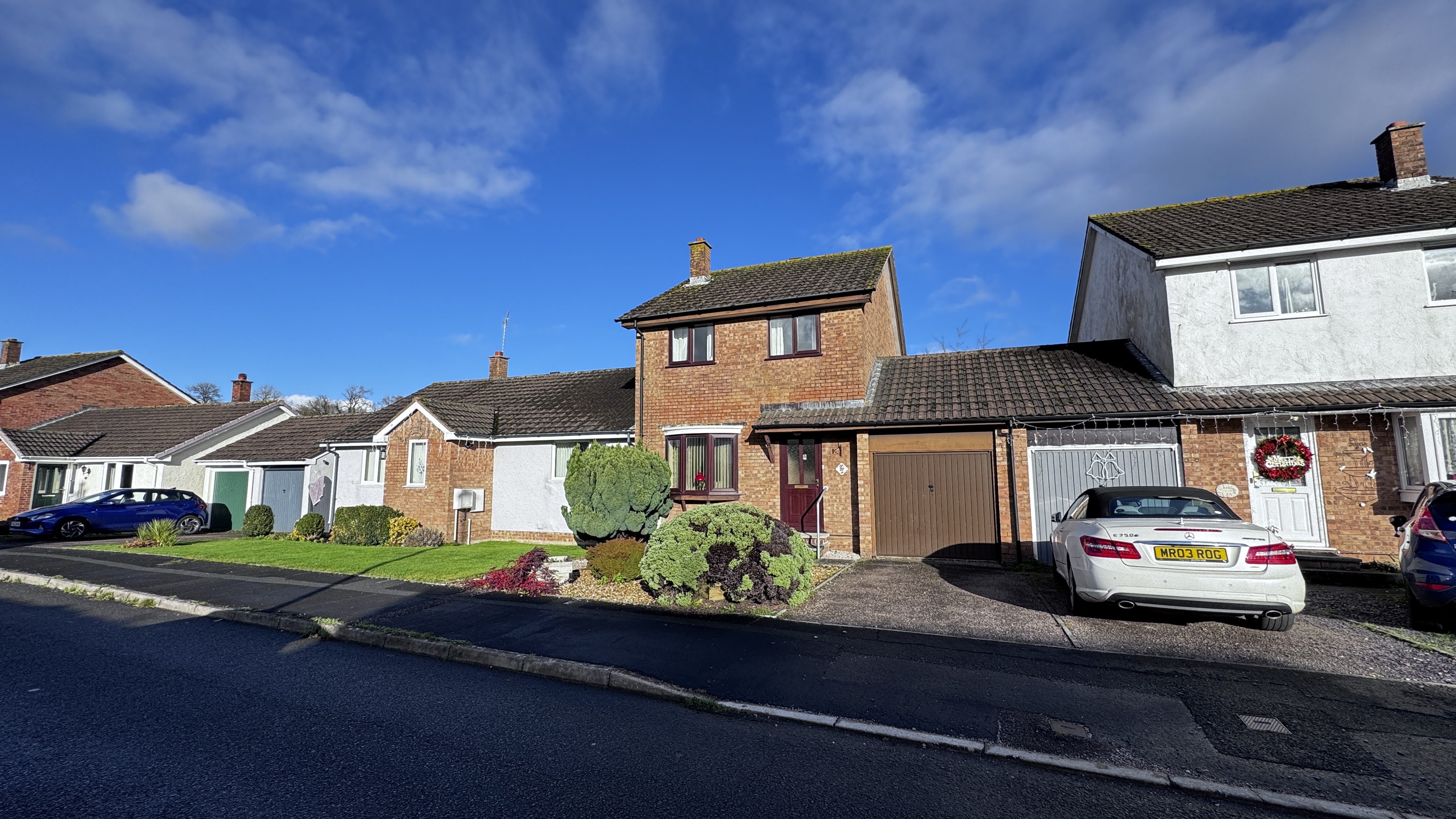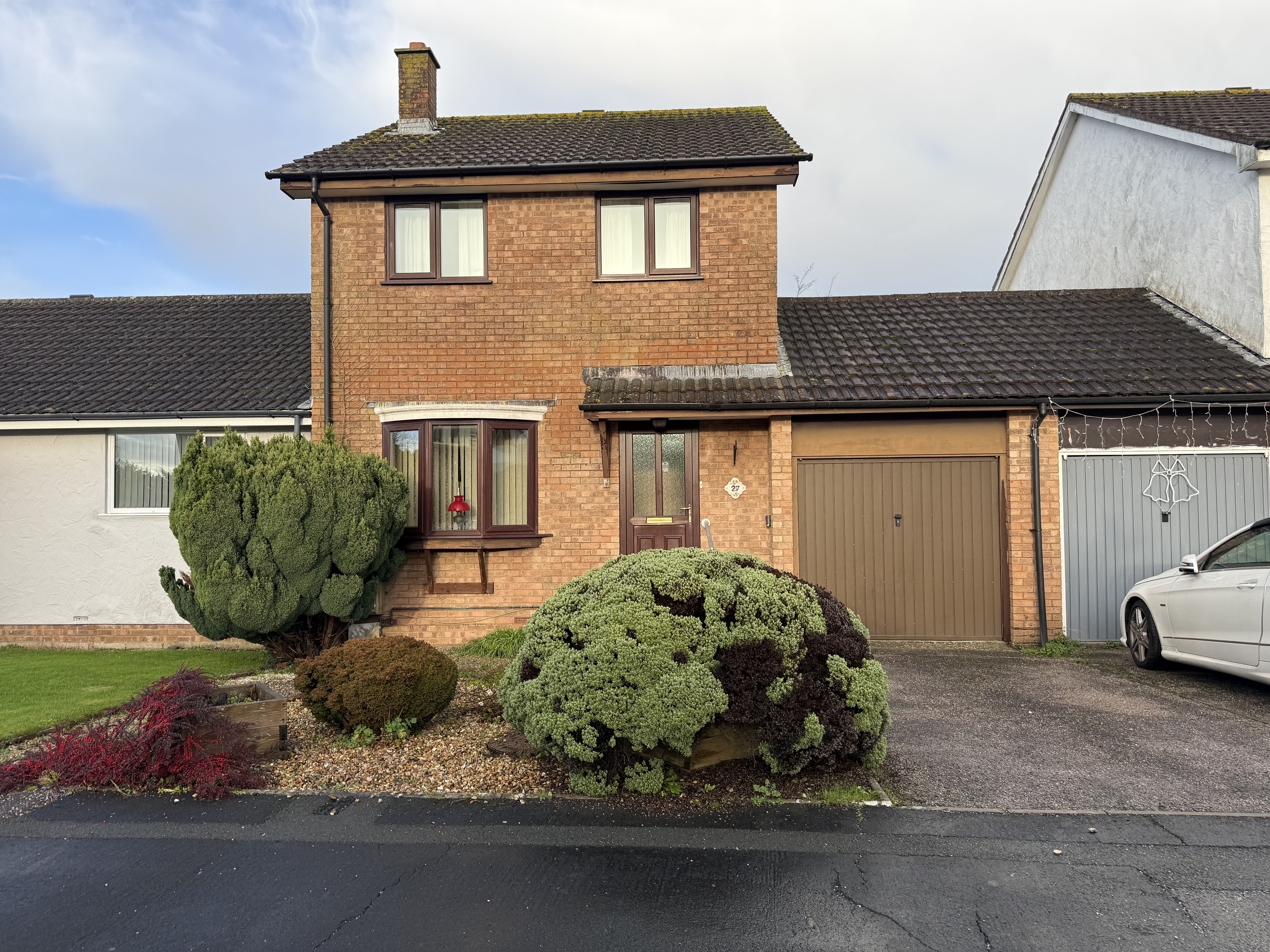 At the front of the property, the tarmac driveway provides off-road parking and leads directly to the garage. There are also some established shrubs and trees that add greenery to the frontage without requiring extensive maintenance.