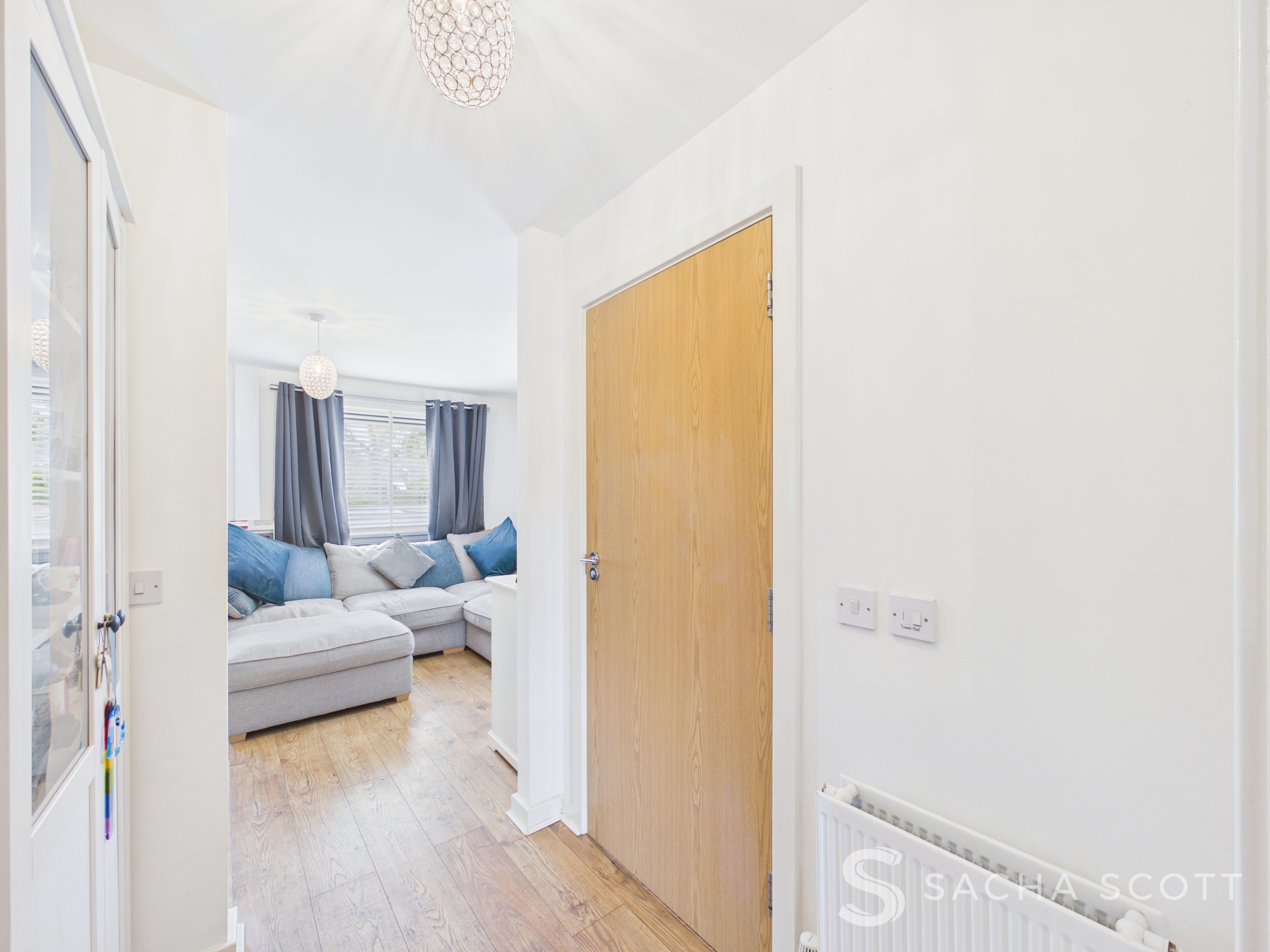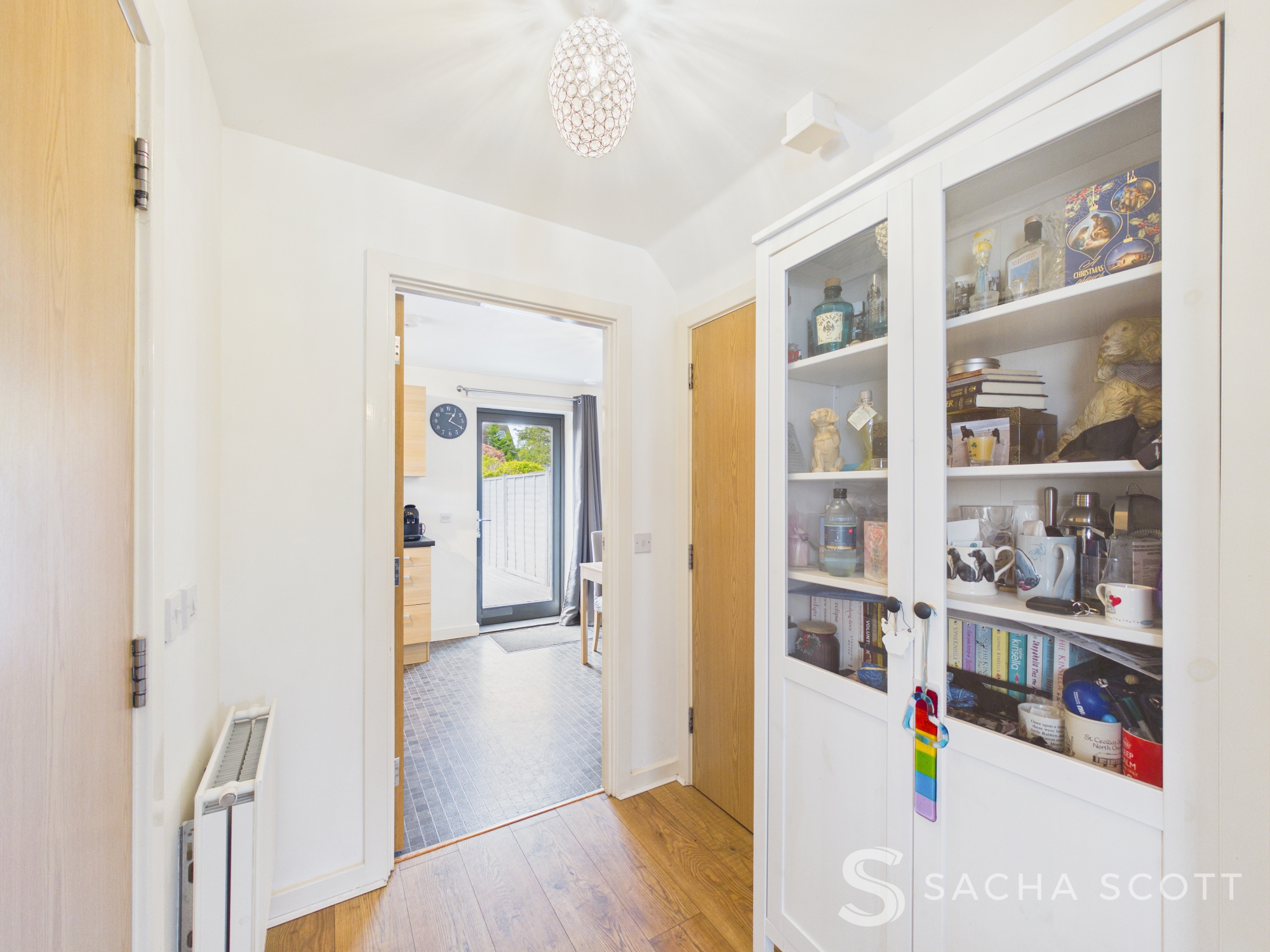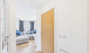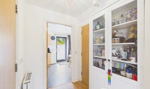 Neutrally presented, the central hall area offers access to the guest WC, a good sized storage cupboard and room for further freestanding storage.