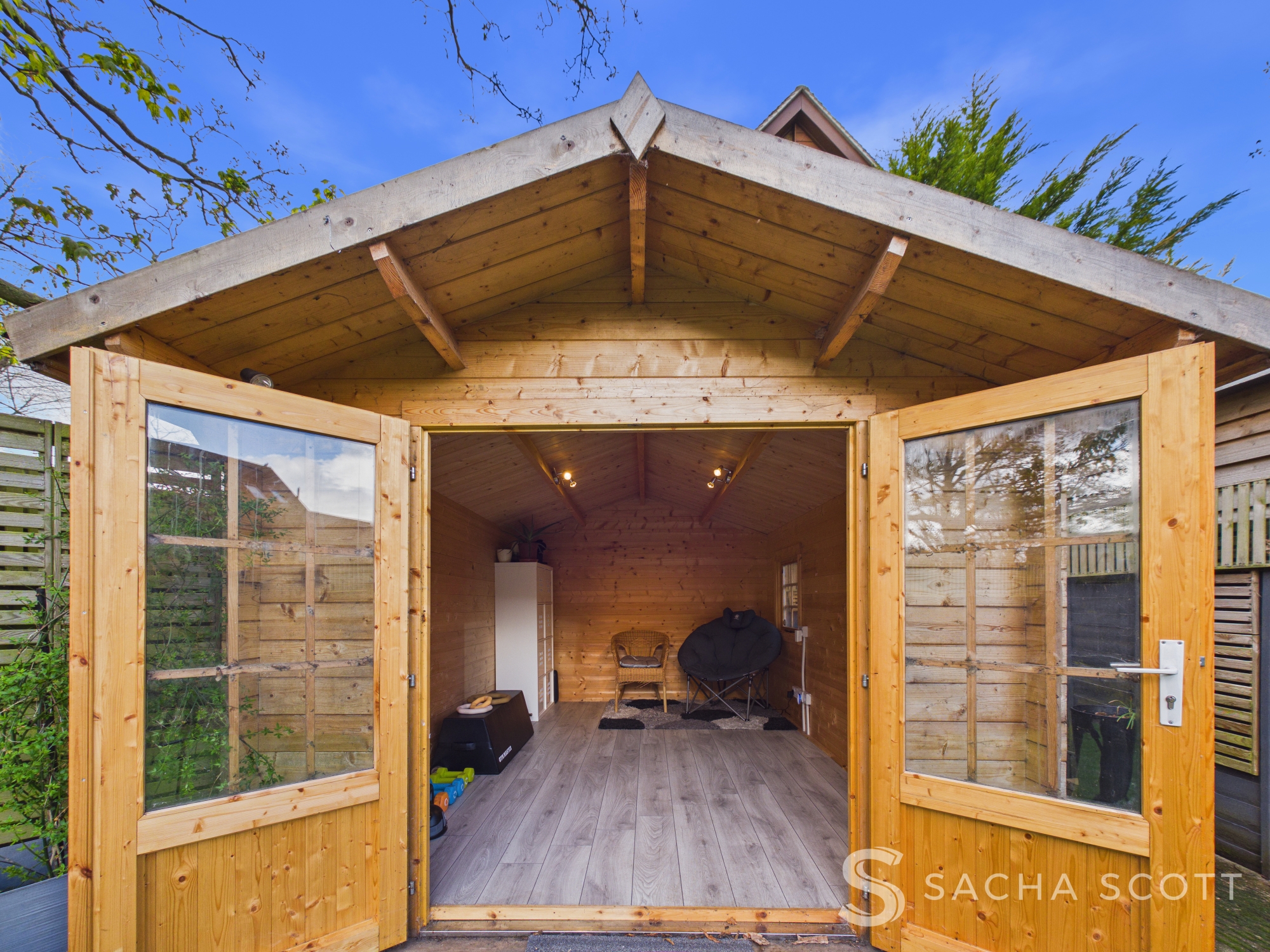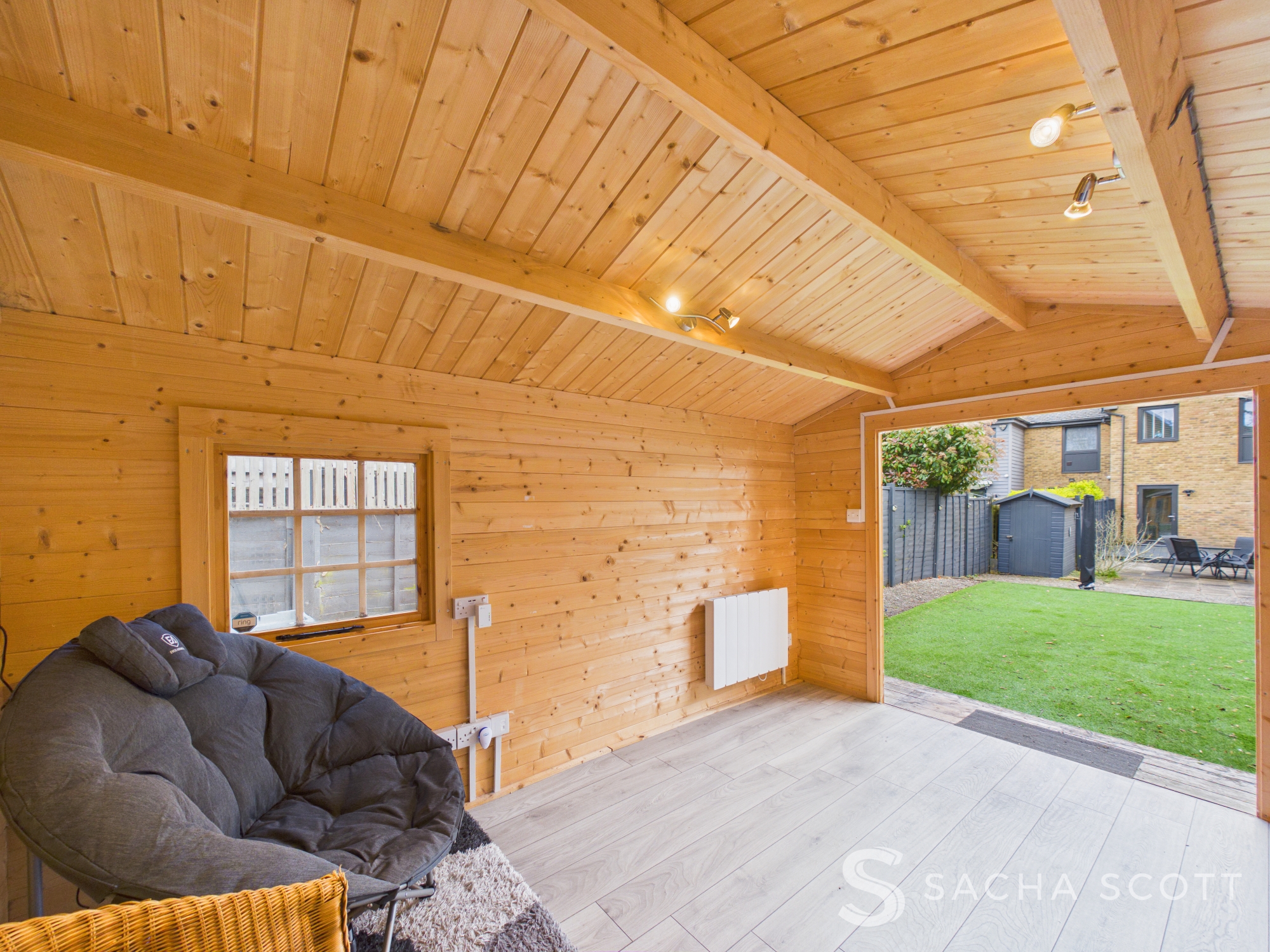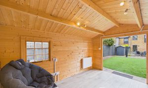 A fabulous addition to this beautiful home, this gorgeous, spacious log cabin is situated at the end of the garden and offers electrics, USB sockets, wi-fi and electric radiators.
