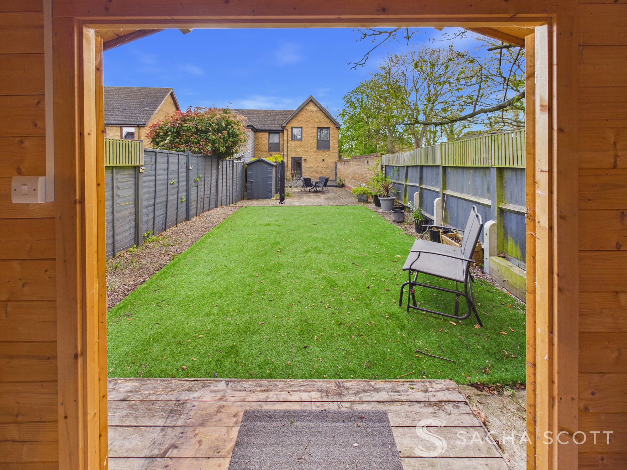 This generous, sun loving garden extends to approximately 90ft by 15ft and enjoys a westerly facing orientation. Thoughtfully arranged, it offers a large lawned area, a shed and side access, along with a spacious paved patio that leads through to a raised decked seating area, ideal for outdoor dining or relaxing in the sun. To the rear, a substantial log cabin with full electrics and external lighting provides excellent additional space, perfect for working from home, entertaining or hobbies.