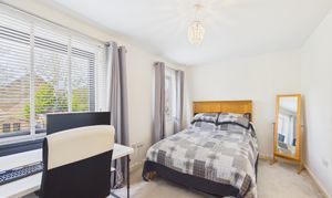 Offering views over the front of this lovely home, the primary bedroom benefits from dual aspect views over the side and front, a generous storage cupboard, neutral decor and ample room for sizeable bedroom furniture.