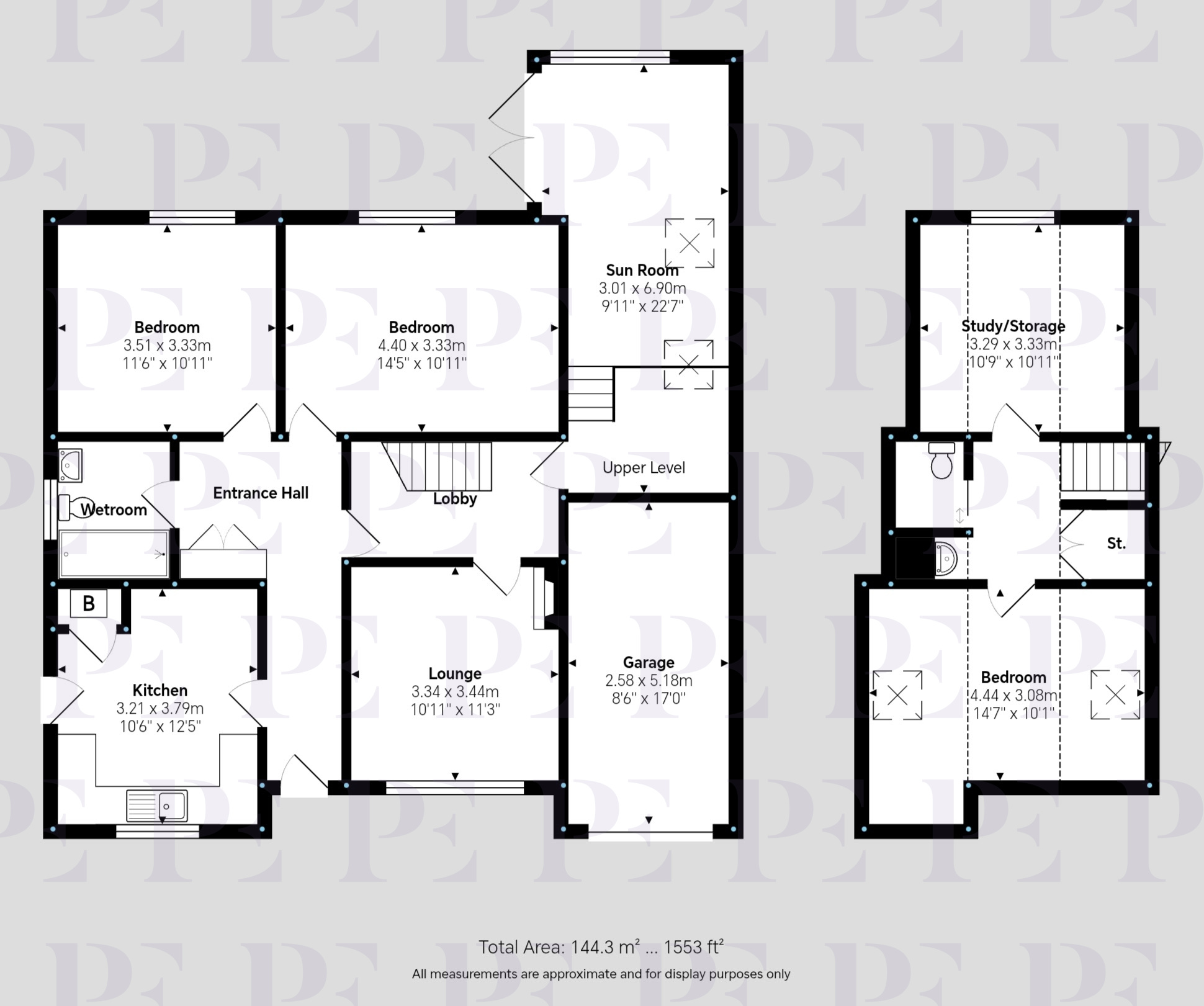 *Measurements include areas with low headroom.* With carpeted flooring, a UPVC double-glazed window, and a central heating radiator.