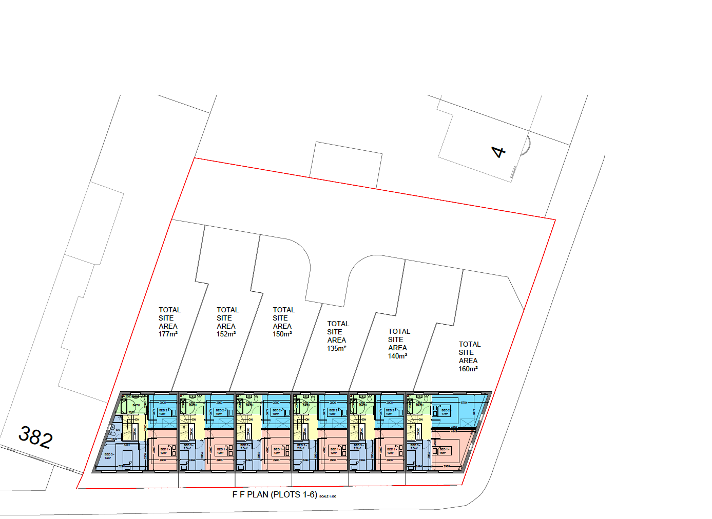 Four town houses with three bedrooms and two end-plot town houses with four bedrooms.