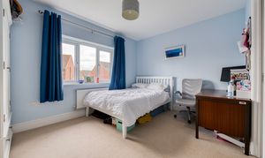 This five-bedroom home, crafted by the prestigious Charles Church in 2016, delivers contemporary elegance and family-friendly functionality. The layout effortlessly blends private and social spaces, with a cosy lounge tucked away from the vibrant heart of the home. A bright, open-plan kitchen and dining area serves as the hub, enhanced by high-quality integrated appliances and seamless garden access. Natural light floods every room, accentuating the sense of space and calm throughout. Upstairs, versatile bedrooms cater to a growing family, with cleverly designed en-suites offering modern convenience. Externally, a generous driveway and integral double garage provide ample parking and storage solutions. The south-east facing garden offers a sun-soaked setting, perfect for relaxing or entertaining in style.