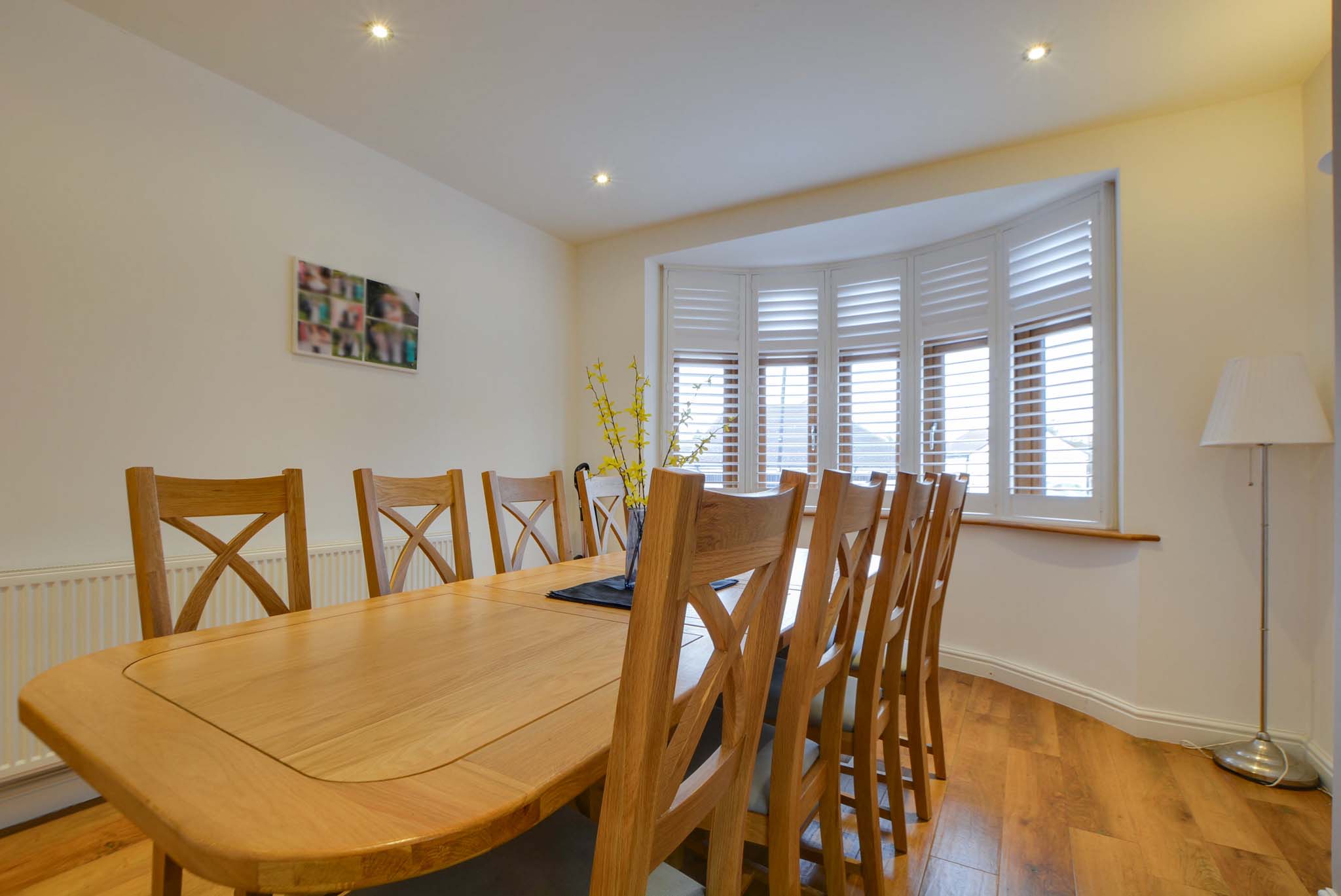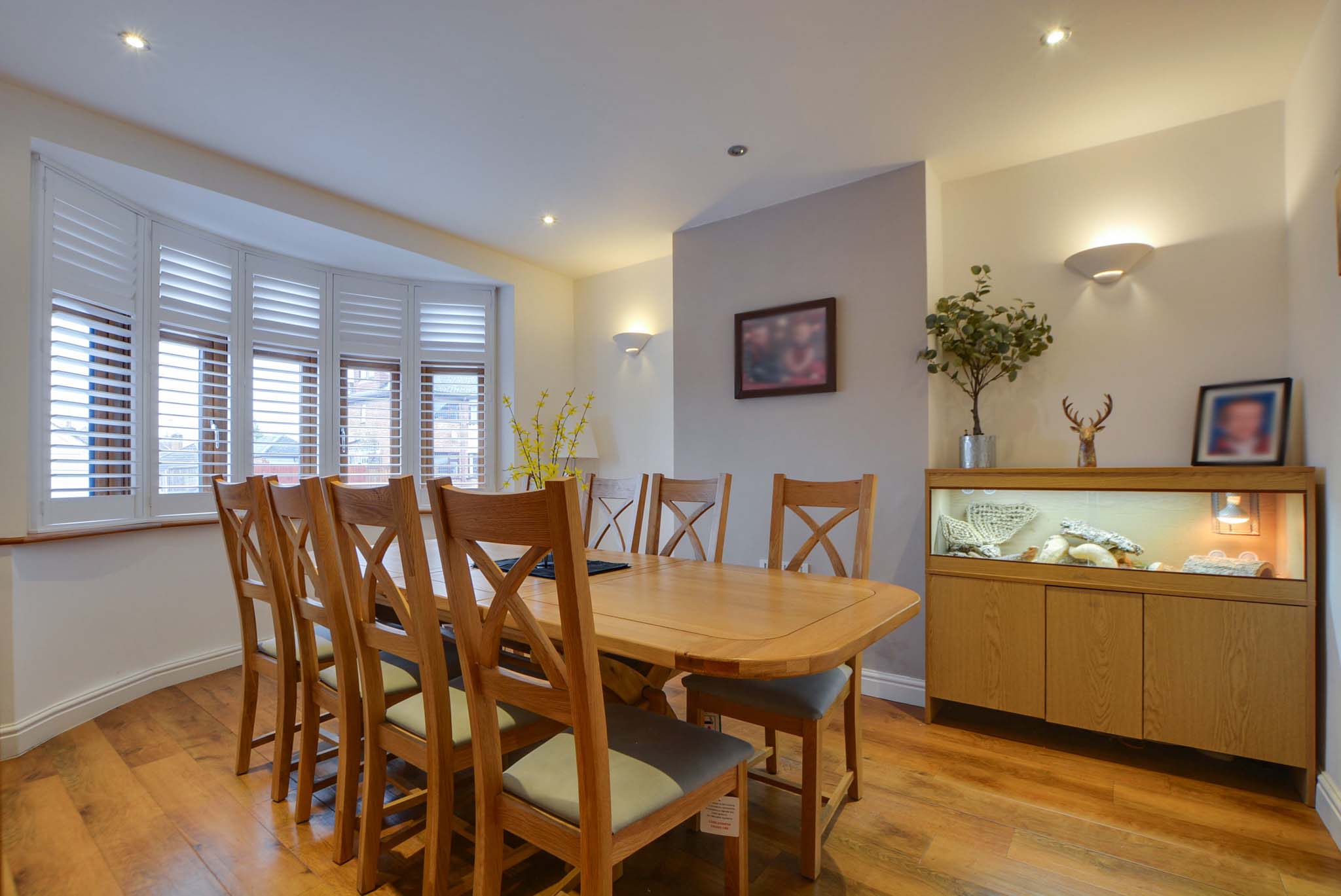 With a double-glazed bay window to the front elevation, stylish internal shutters, Karndean flooring, spotlights, wall lights, chimney breast and a radiator.