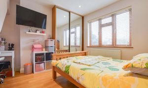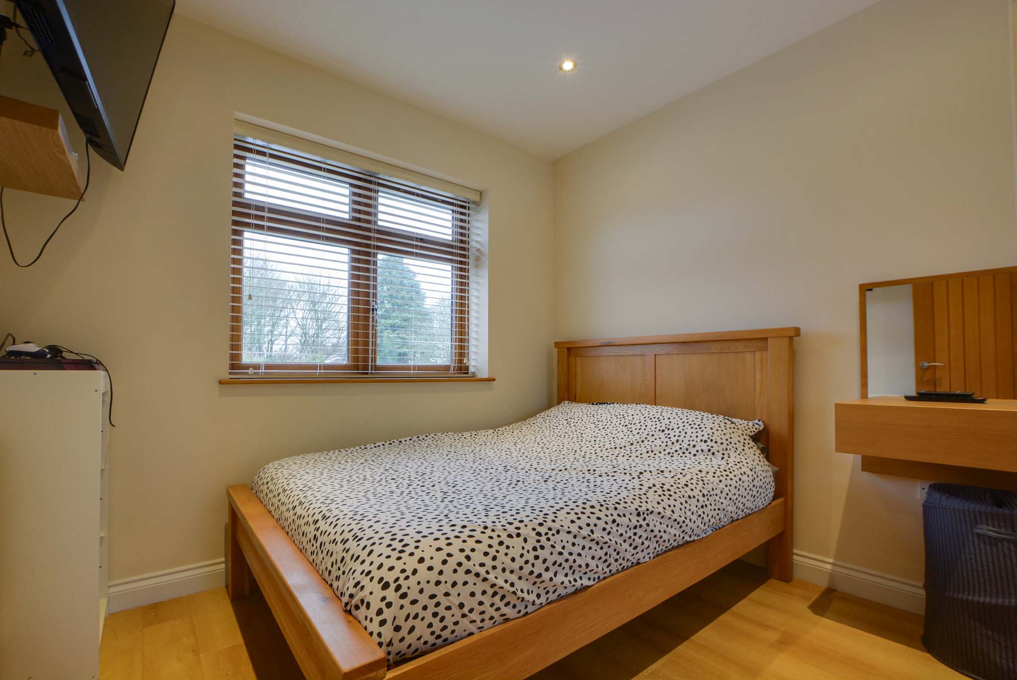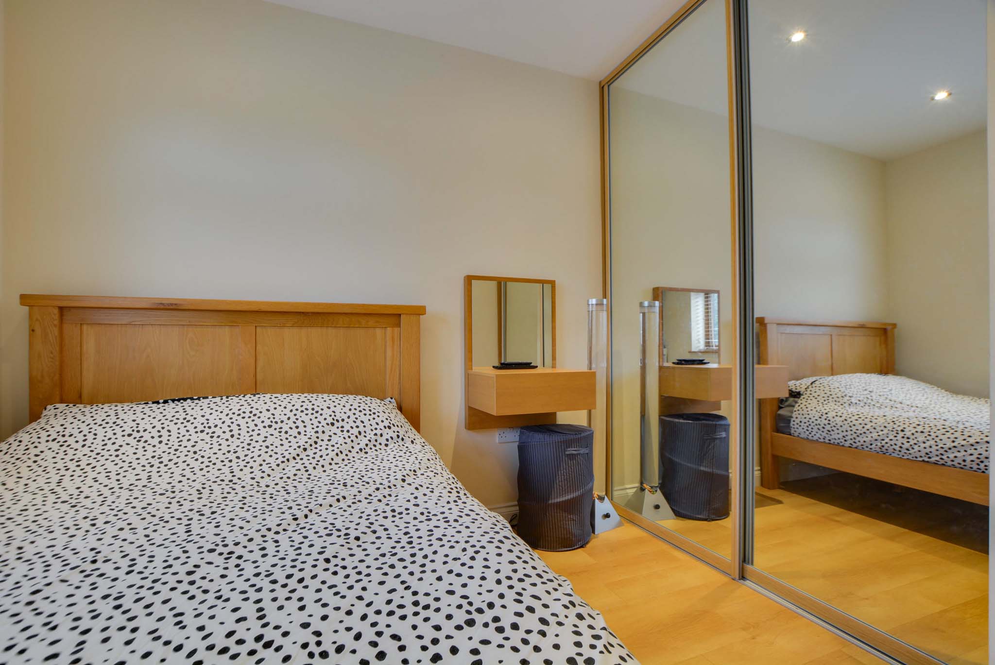 With a double-glazed window to the front elevation, a built-in sliding mirrored wardrobe, Karndean flooring, a TV point, spotlights and a radiator.