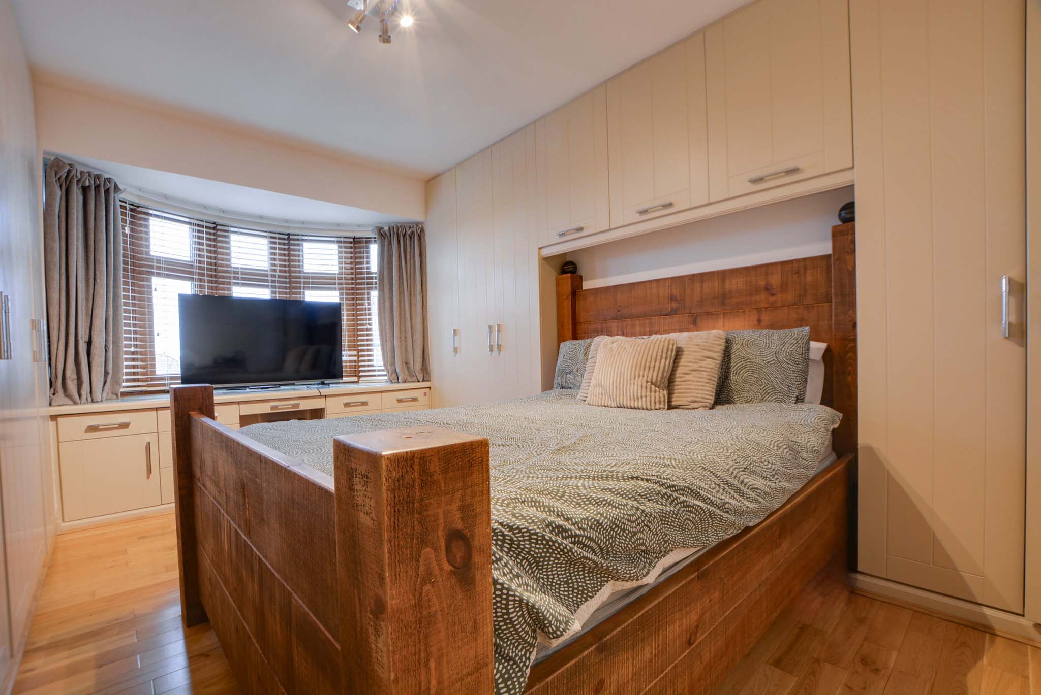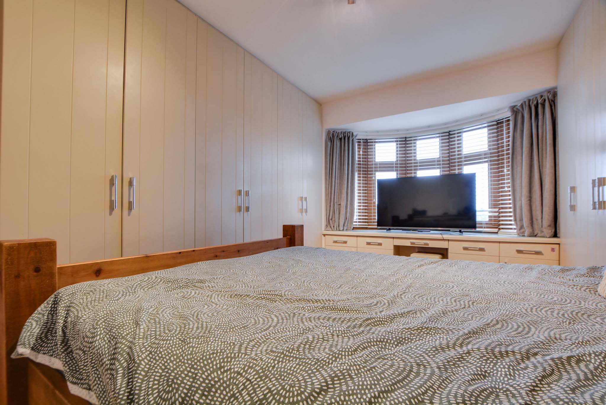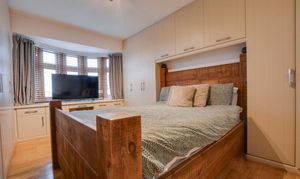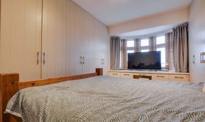 With a double-glazed bay window to the front elevation, built-in wardrobes, drawer units, Oak flooring, a TV point, and a radiator with a feature radiator cover