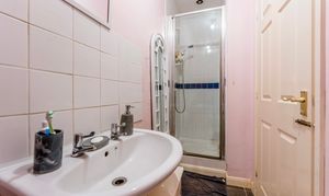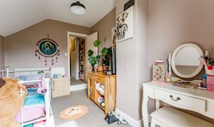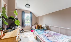 Upstairs, there are three bedrooms. The principal bedroom is a comfortable double with its own ensuite shower room, while the second bedroom also offers good proportions. The third bedroom could serve as a single, nursery, or home office. A family bathroom completes the first floor.