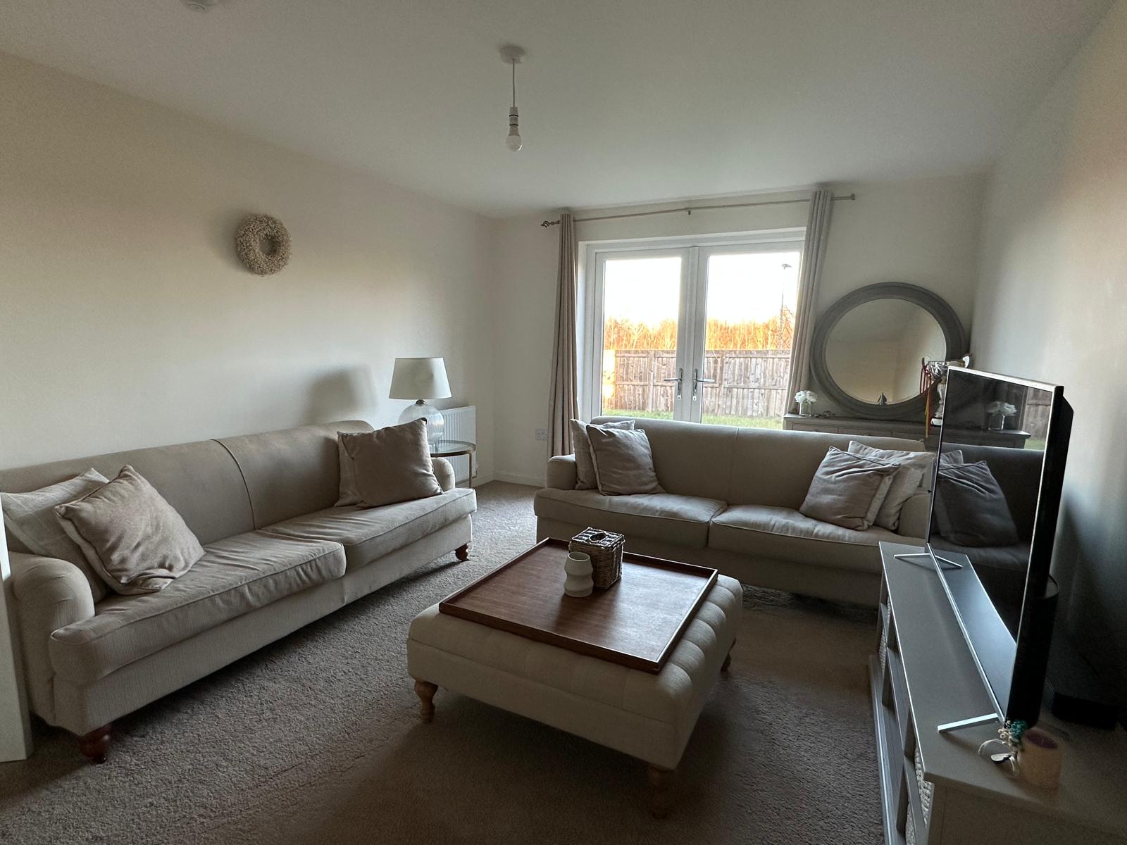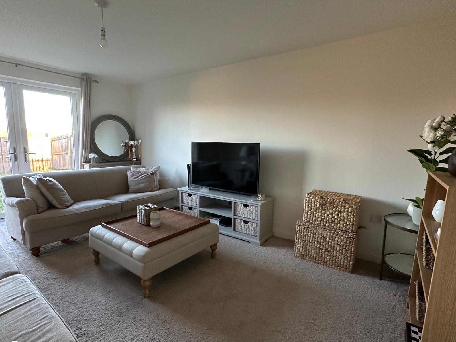 - Generously spacious lounge with feature patio doors leading onto rear garden area, neutral decor, carpeted
