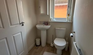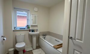 - Family bathroom comprises low level wc, wash hand basin and bath, laminate flooring and heated towel rail.