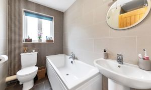 Upstairs to the first floor, this lovely modern home continues to offer generous accommodation, with 5 well-proportioned bedrooms, integrated storage, and a family bathroom comprising a bath, a shower, a WC and a hand wash basin. The primary bedroom is particularly large and enjoys windows to a dual aspect and its own en-suite, with a shower, WC and sink.