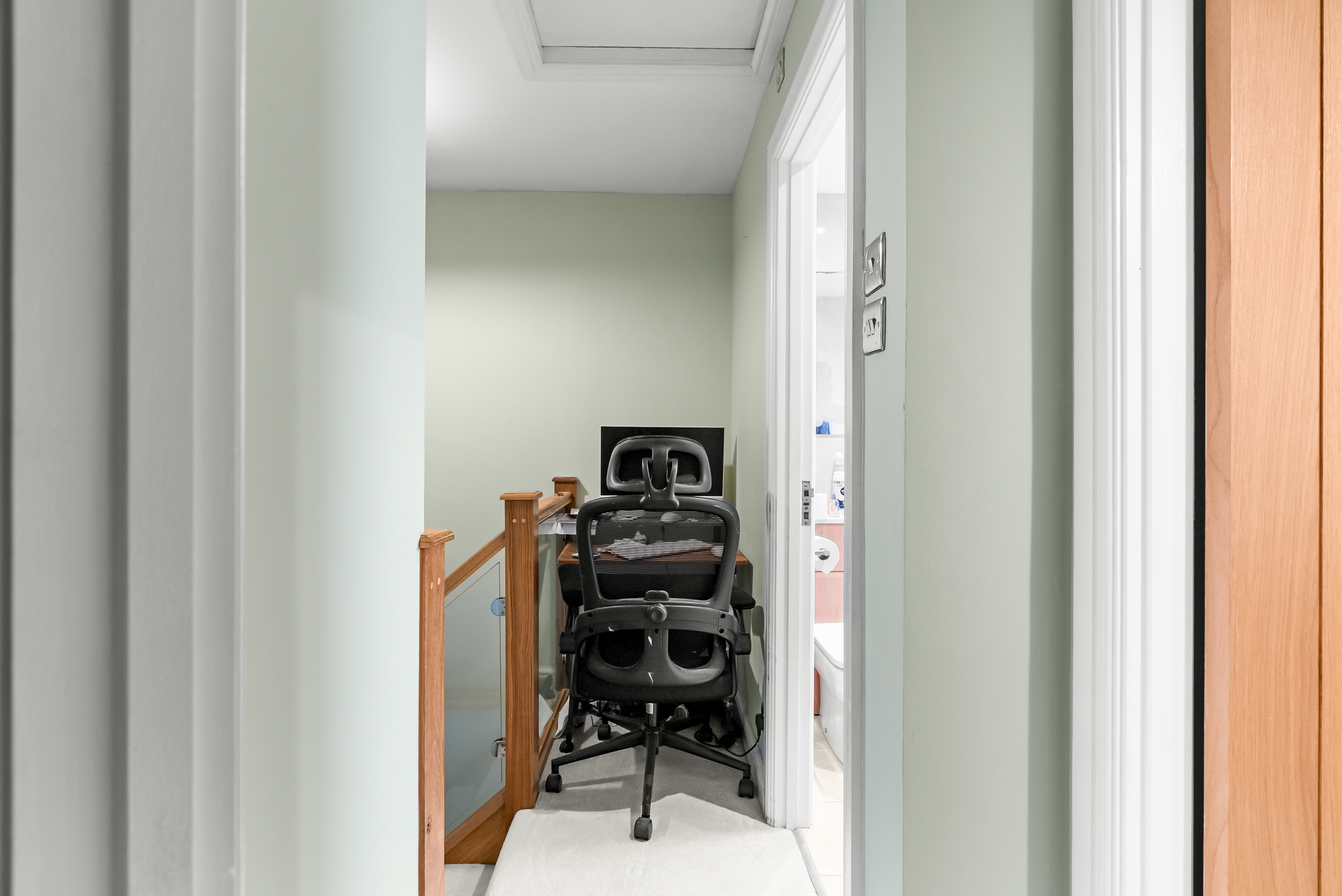Inside, the property has been finished to an excellent standard, featuring elegant engineered wood flooring and a striking oak and glass staircase that adds a contemporary touch. The sleek, modern kitchen is fully equipped with quality fittings, while the stylish bathroom completes the home’s move-in-ready appeal.