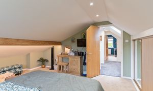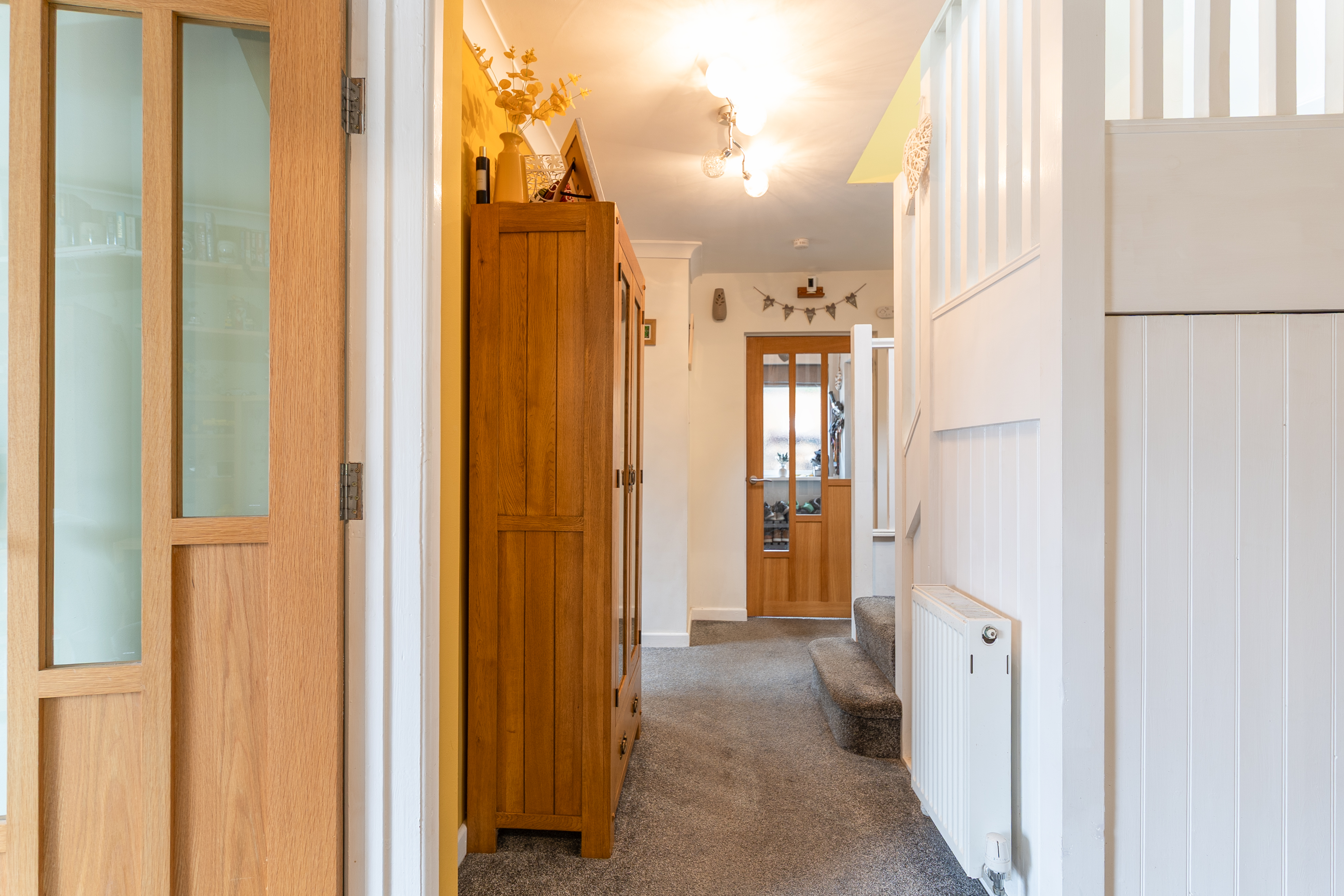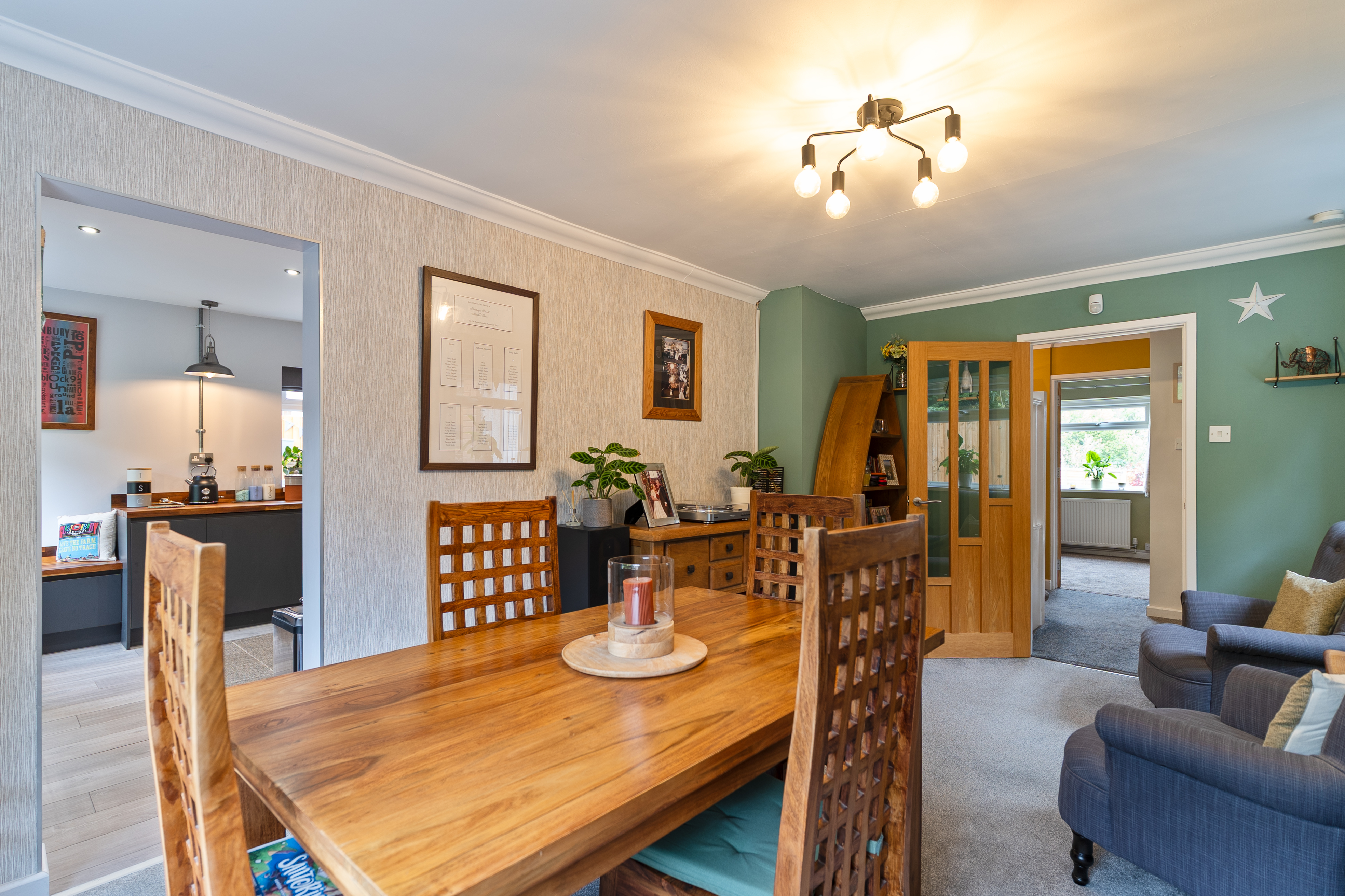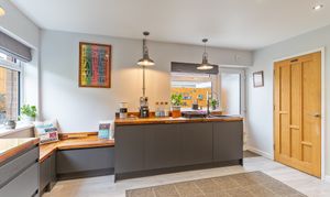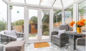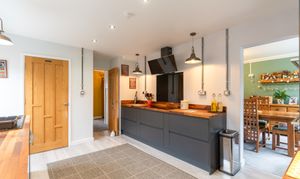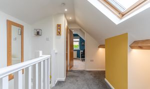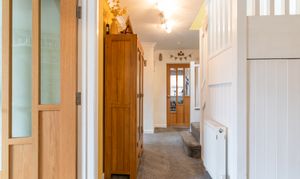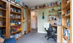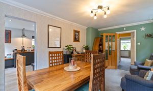Upon entering the property, you are welcomed through an initial porch which opens into the main hallway, providing access to the primary living areas, a bedroom, the bathroom, and stairs leading to the first floor. To the front of the property, the spacious dining room and modern fitted kitchen create a bright and sociable environment, ideal for everyday family life or entertaining. The kitchen features ample storage, a built-in bench, and a large walk-in pantry, offering both practicality and character. To the rear, the beautifully presented living room enjoys a relaxing ambience, complete with a feature log burner fire and access out to the conservatory, which provides a lovely spot to sit and enjoy the garden views throughout the year. Adjacent to the living room is an additional room currently used as a study, which offers excellent flexibility to serve as a third bedroom or hobby space. Completing the ground floor is a high-specification bathroom fitted with a WC, hand basin, and a large walk-in shower, finished to a contemporary standard.