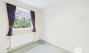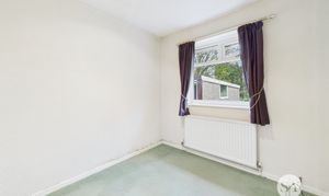 Single bedroom with carpet flooring, double glazed uPVC window, panel radiator.