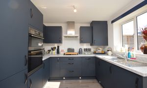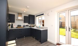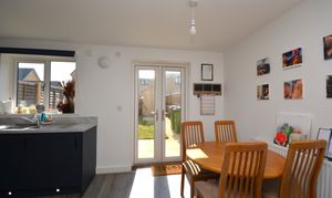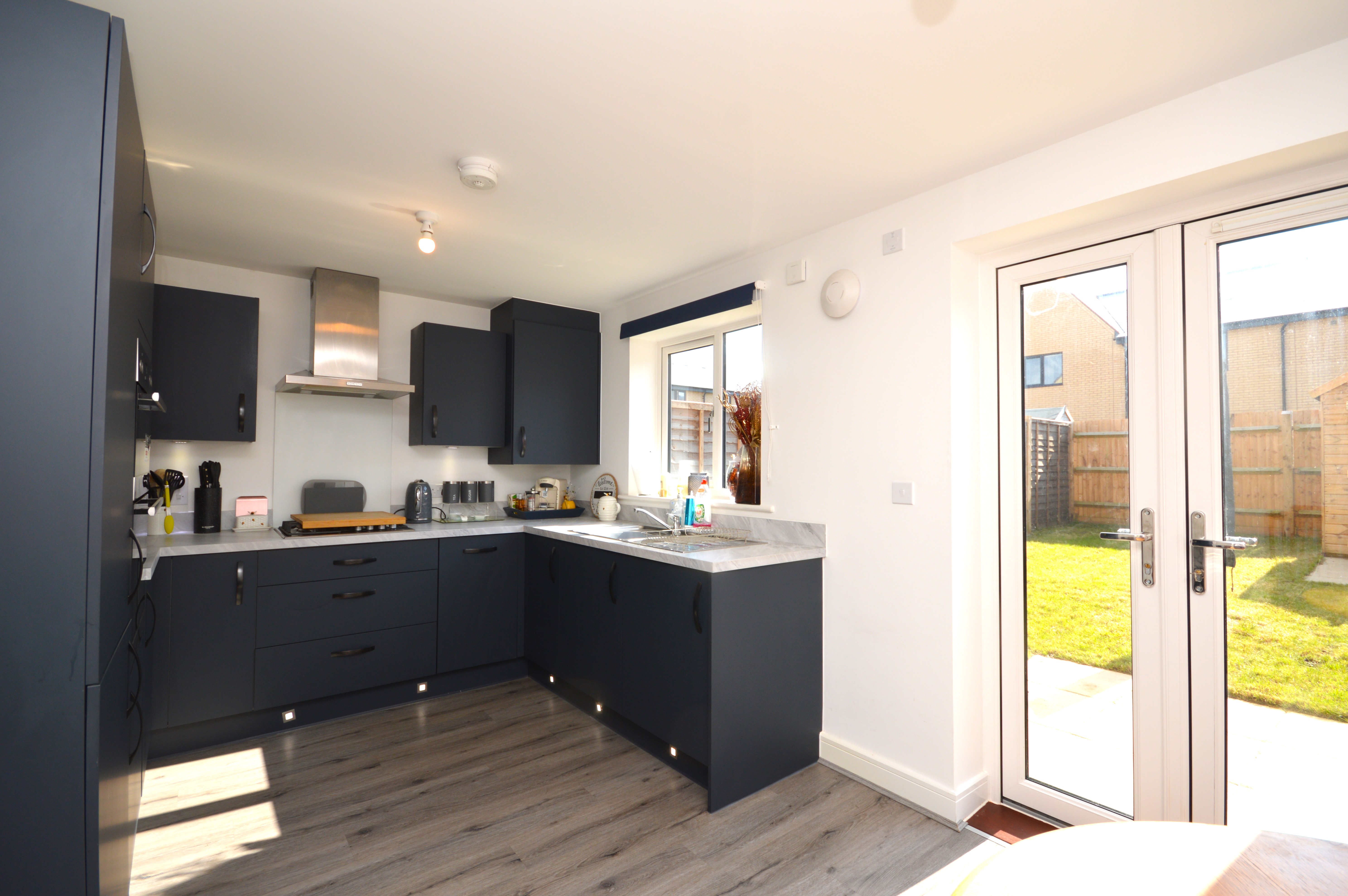 UPVC double glazed patio doors out to the garden with a separate UPVC double glazed window overlooking the garden. Continuation of LVT flooring running through. Upgraded kitchen comprising of all integrated AEG appliances including fan oven with grill above, hob, fridge freezer, washer/dryer and a slimline dishwasher. Kitchen has stainless steel sink, four burner gas hob, extractor fan, radiator and cupboard housing the combi boiler. Space for dining table and chairs.