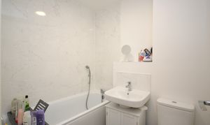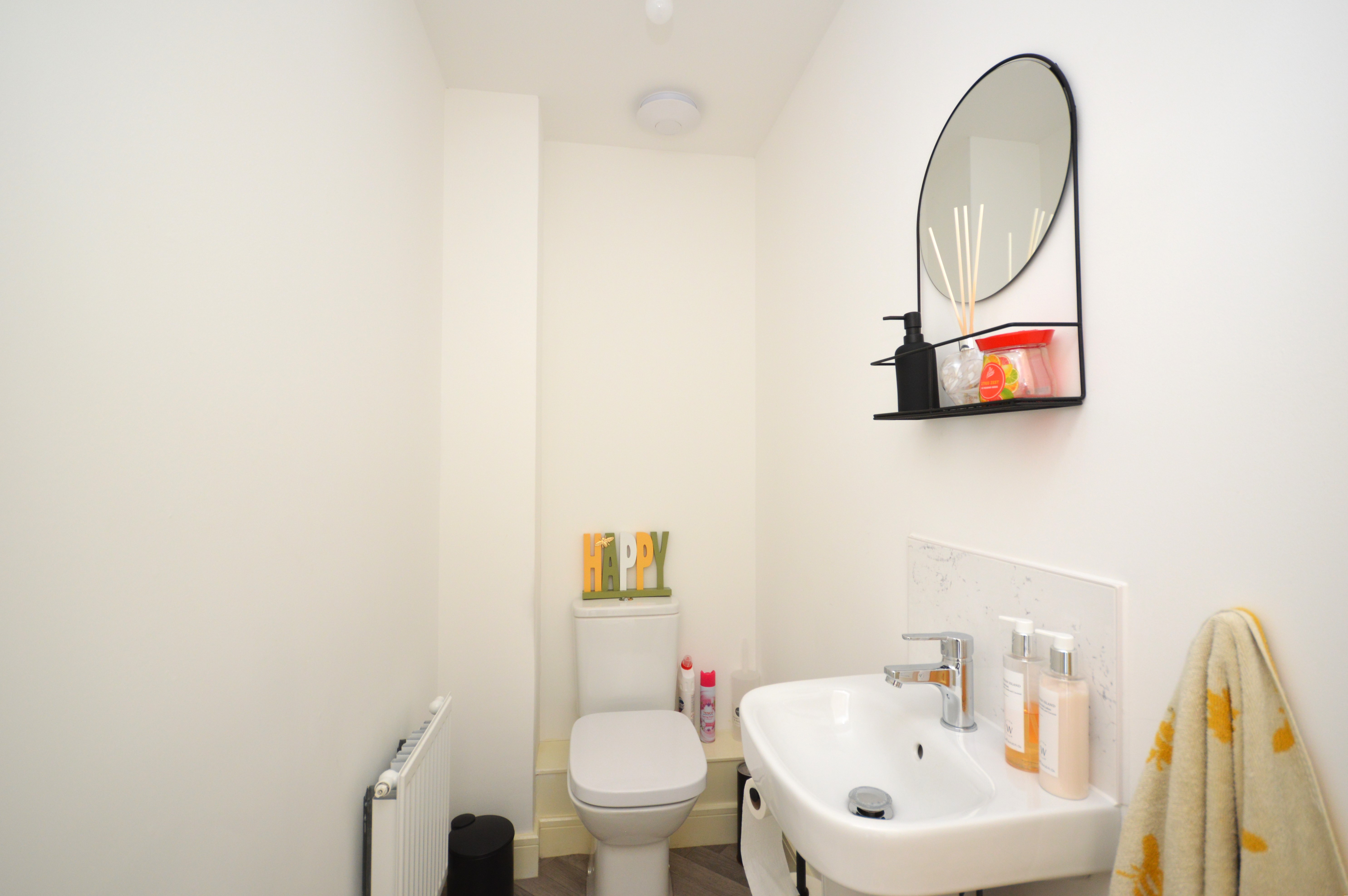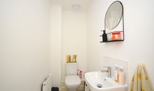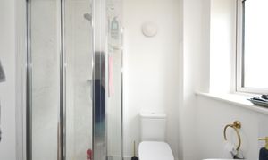 UPVC double glazed frosted window to the front of the property. walk-in shower, closed couple WC, hand basin, vinyl non slip flooring, heated towel rail, part tiled walls and extractor fan.