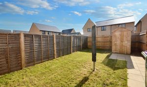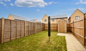 Patio area as you exit out from the kitchen with a pathway leading down to another small patio area in front of the shed. Area laid to lawn. Side access down the side of the property accessible by gate.