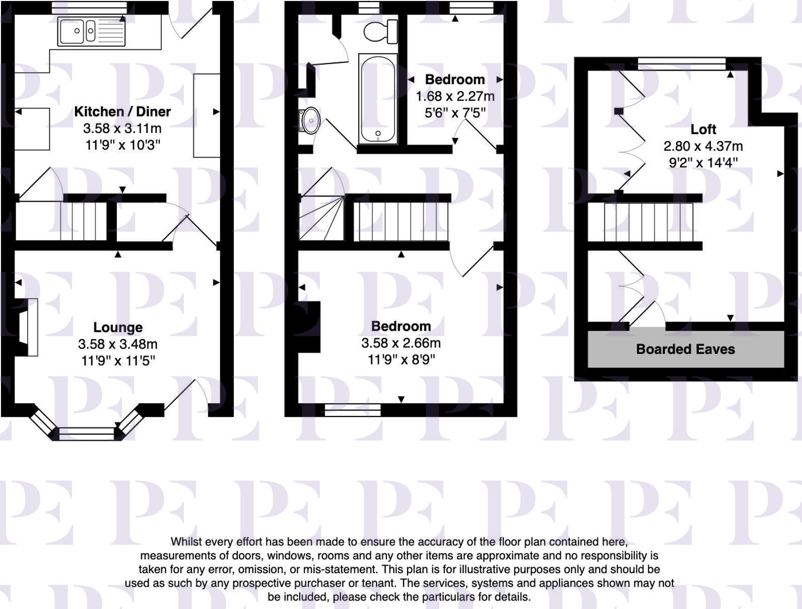 Upstairs, both bedrooms are bright and inviting, each featuring large windows for abundant natural light. The main bedroom offers built-in wooden wardrobes. The second bedroom, currently styled as a nursery, boasts decorative wallpaper and a warm, airy atmosphere - easily adaptable as a guest room or office. The modern bathroom showcases contemporary hexagonal and geometric tiles, and a convenient shower over the bath. Compact storage solutions and frosted windows ensure the space remains both practical and stylish. The loft has been partially converted and is only to be used as a loft.