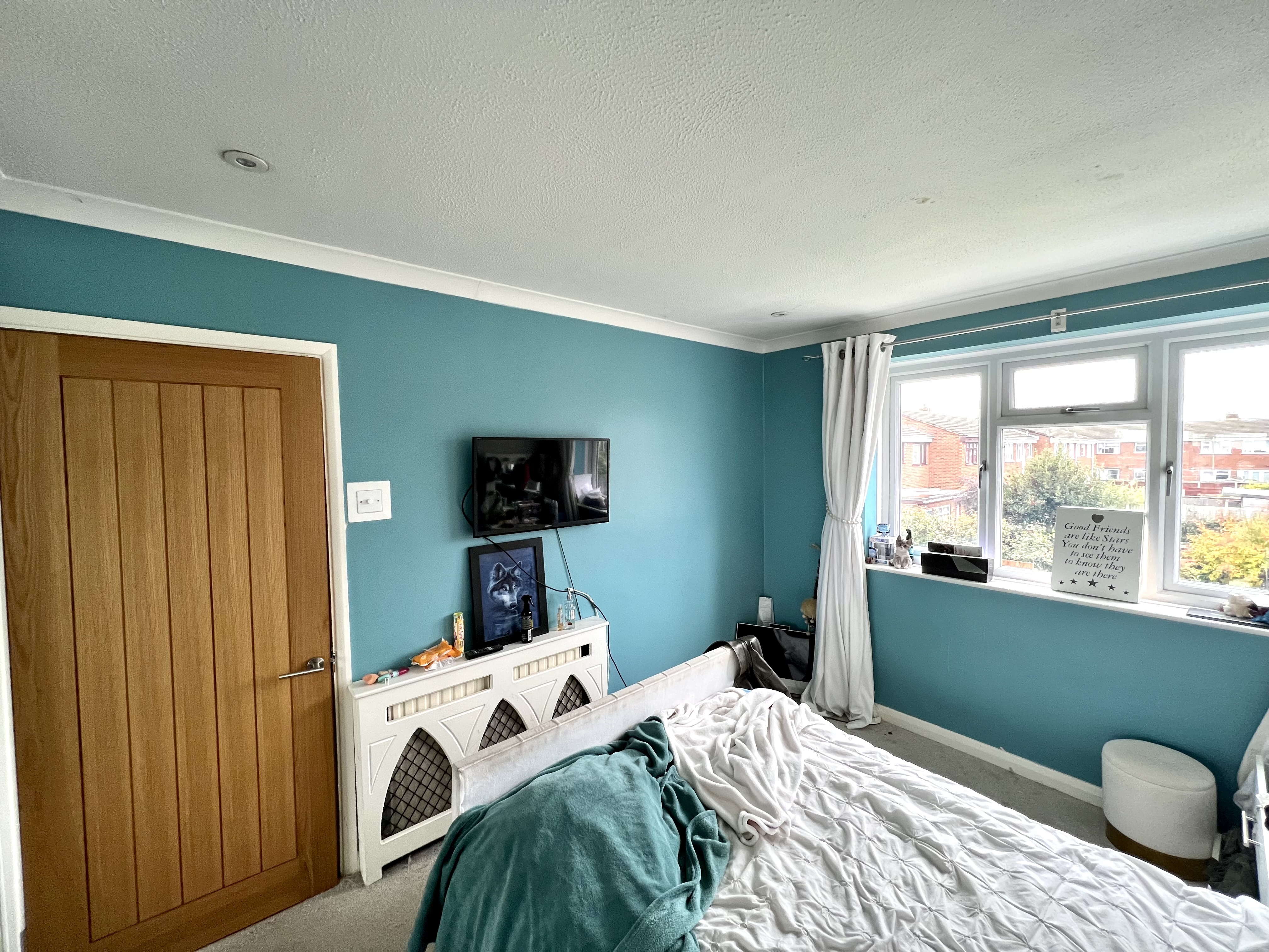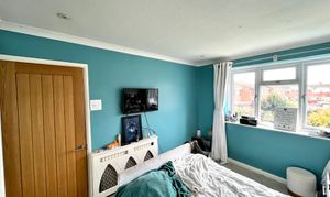 Upvc double glazed bay window with deep sill to front. Smooth plastered ceiling with inset spotlights. Access to loft space. Radiator. Fitted carpet.