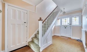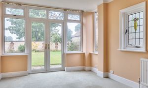 The original front door opens onto a lovely wide entrance hall with the original staircase to the first floor, leading to all ground floor rooms and stained glass windows to either side of the door. The spacious reception room features a large bay window to the front of the house with coving and picture rail. The dining room, again a beautifully proportioned room, has windows and French doors opening to the garden and coving. The kitchen has a range of wall and base units, a side door to the garden and ample space for a table and chairs. A door from the hallway opens to the garage which has a modern garage door to the front of the house and the original double doors to the rear which opens to a hard standing.
