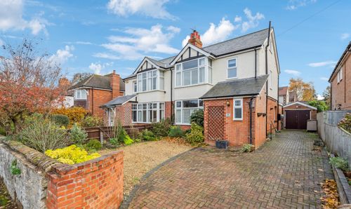 There is a generous driveway to the front along with a paved area screened from the road. The rear garden is predominantly laid to lawn, with well stocked borders and a large paved terrace. The large single garage allows space for a car as well as bikes etc and is fitted with two sets of windows, making it readily convertible to an additional living space (STPP).