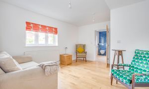 The kitchen/dining/sitting runs across the back of the house with two sets of bifold doors opening onto the garden. The kitchen area is well fitted with a comprehensive range of units. Oak flooring runs throughout this space with a modern log burner in the sitting area. There is a large family size utility room complete with integrated appliances with access to the garden. The ground floor bedroom/family room has an ensuite wet room, which can also be accessed via the utility room. Completing the ground floor is a generous study or sitting room.