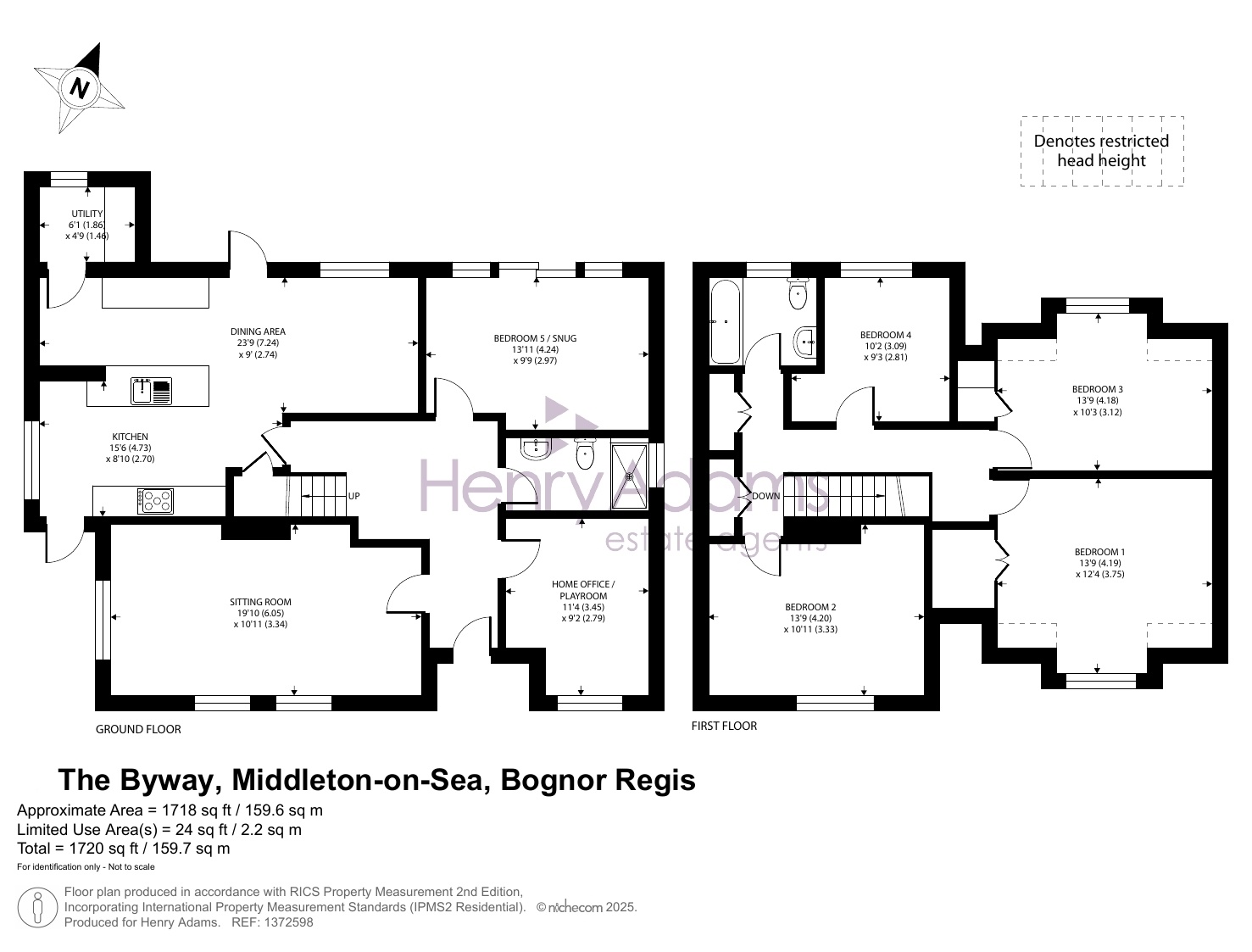 Boasting a generous 1,720 sq ft of accommodation, this home features four good sized first floor bedrooms and family bathroom, with the choice of a fifth bedroom (currently used as a second sitting room) and adjacent shower room on the ground floor if needed. The ground floor features a spacious entrance hall, the family sitting room along with a generous kitchen-dining room which serves as the heart of the home, offering a central hub for gathering and sharing meals with loved ones. From here there is a separate utility area and door to the rear garden. In addition there is the home office/playroom providing ample space for comfortable living and entertaining. The versatile layout allows for various configurations to suit individual preferences and needs.