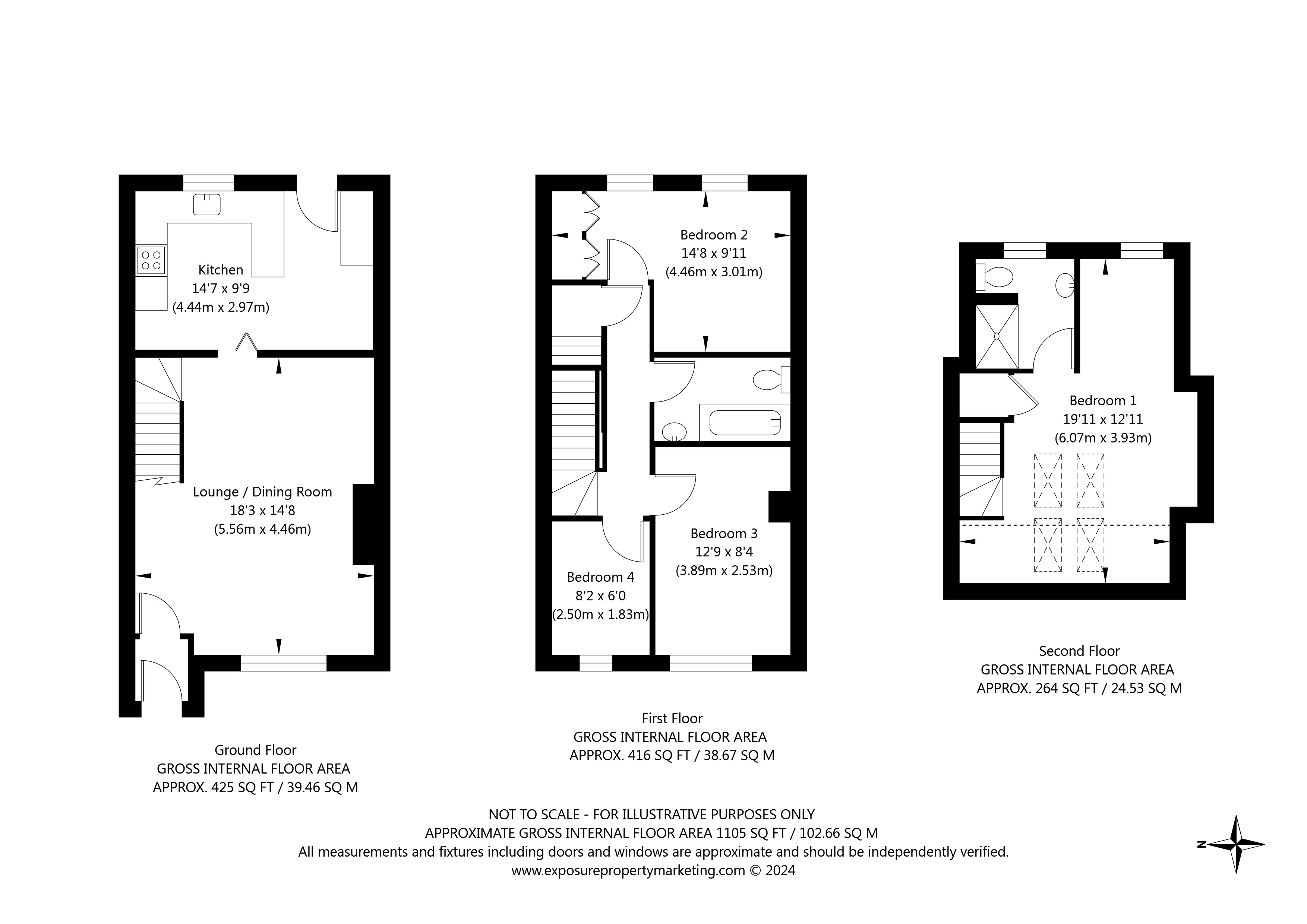 - Approx Sq Feet: 1,105 sqft