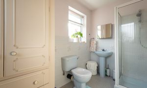 The family bathroom is finished to a high standard, featuring contemporary fittings and a calming ambience.