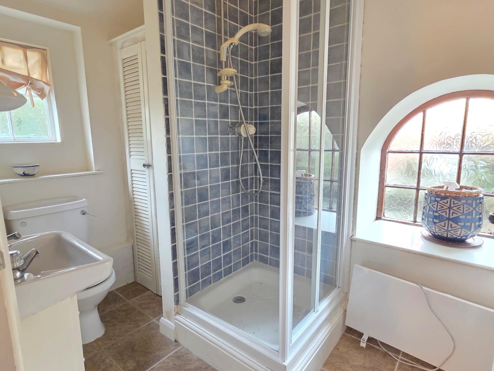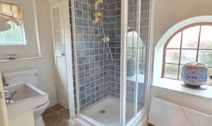 The outbuilding is currently being used for an additional bedroom with shower room facilities but has possibility of being a detached office. This has carpet flooring, lighting, electric heater and access through into the shower room. The shower room has a walk-in shower cubicle, wash hand basin, low level flush WC, integrated storage, tiled flooring and two glazed windows.