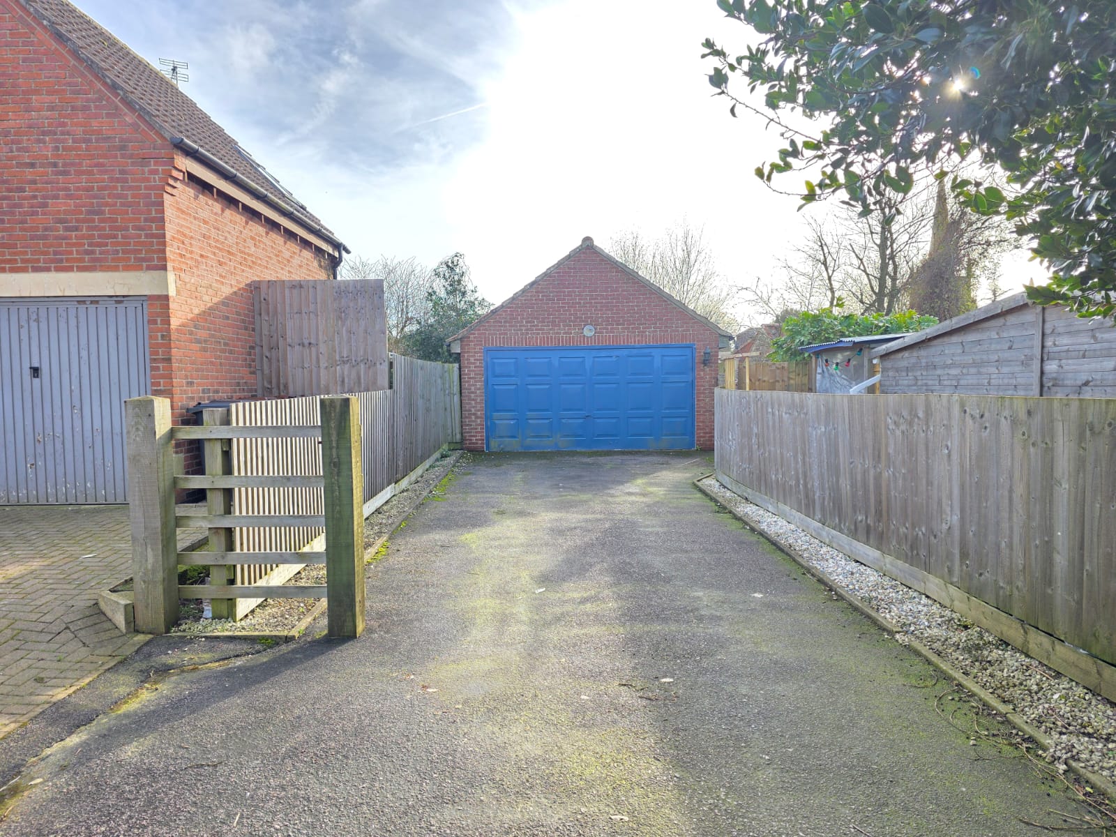 The double garage has concrete flooring, work bench, lighting, electrical points, 2 glazed windows, side access plus traditional up and over garage door.