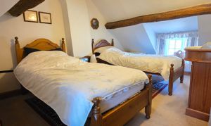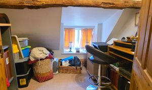 The third and final bedroom includes carpet flooring, exposed beams, glazed window over front aspect.
