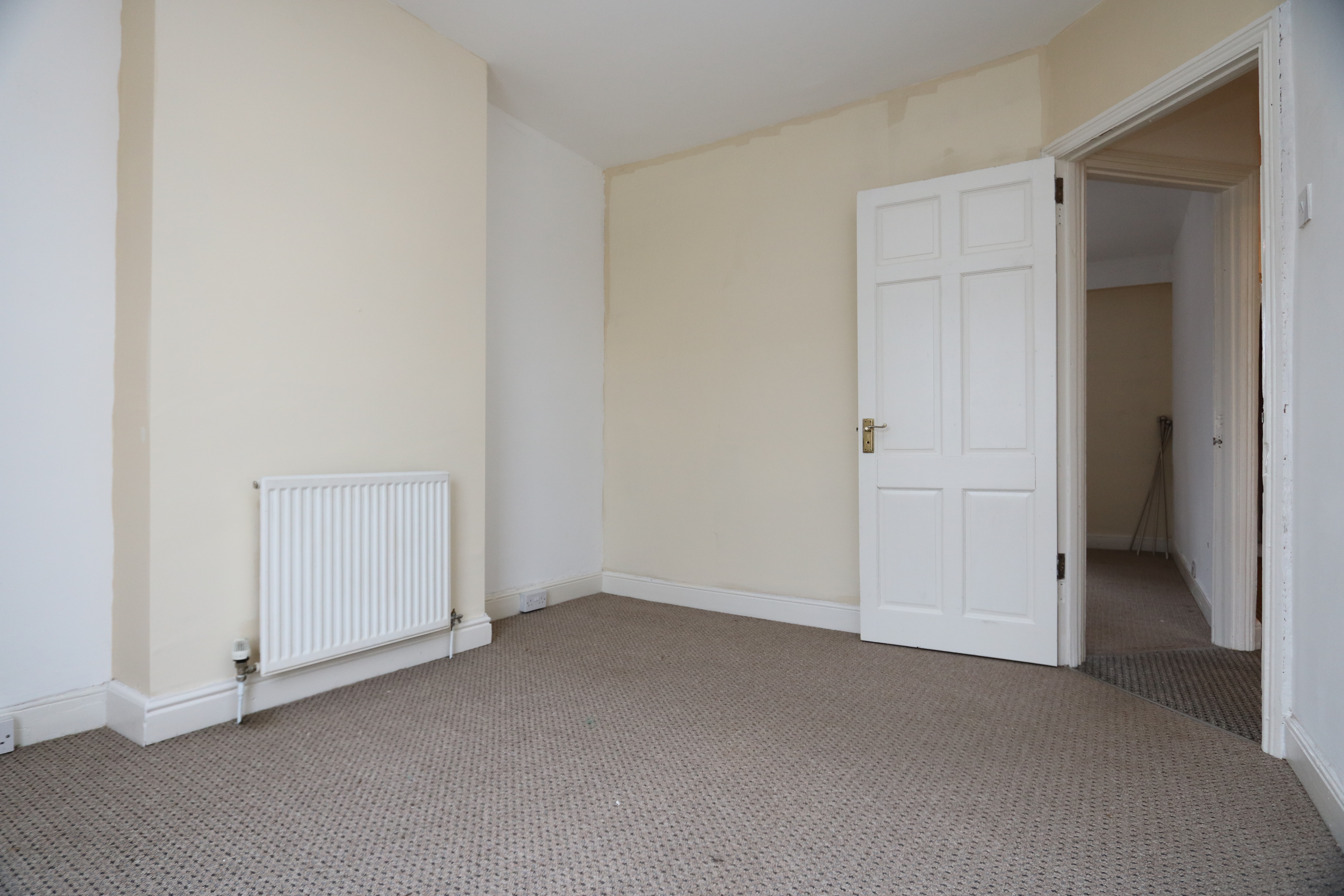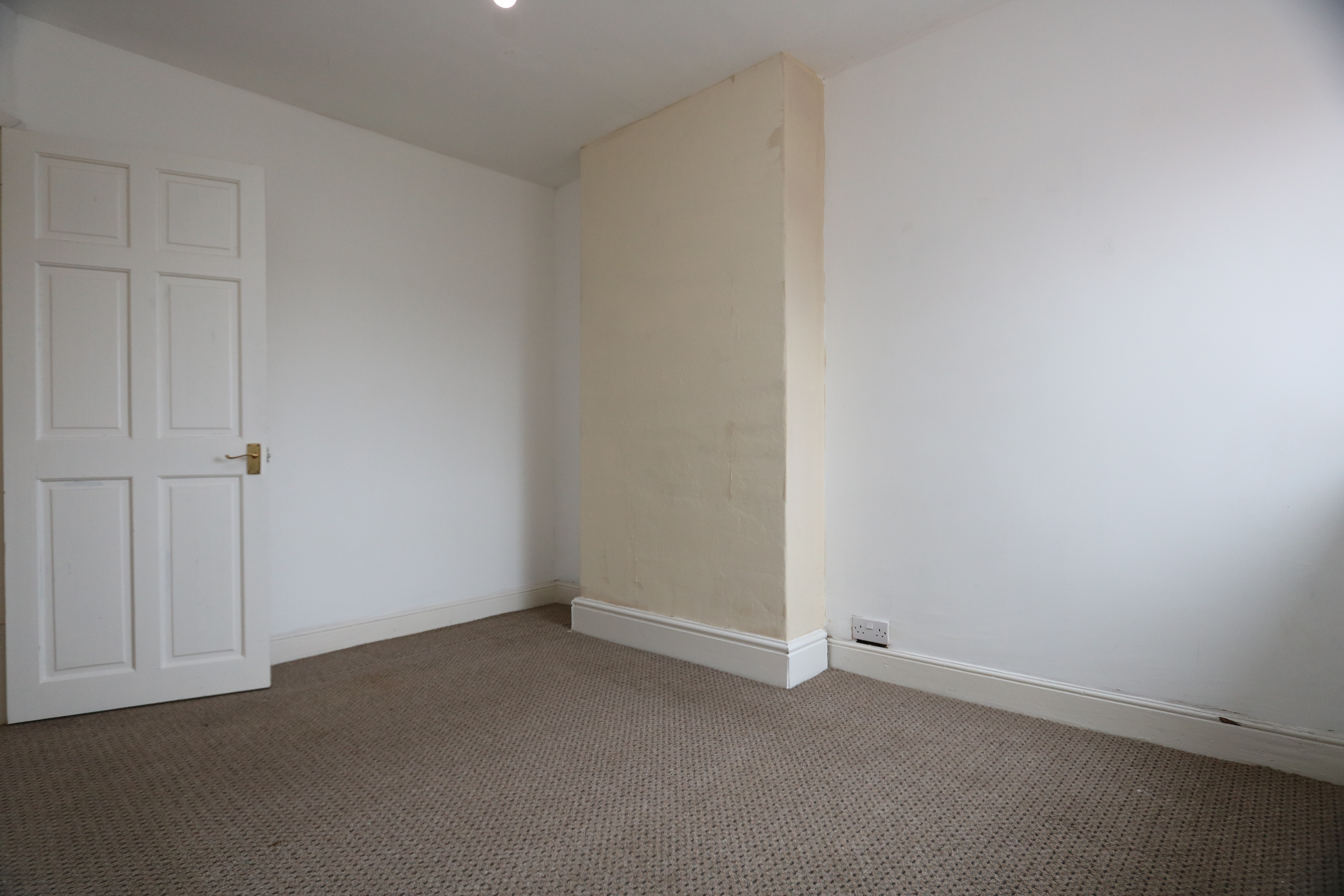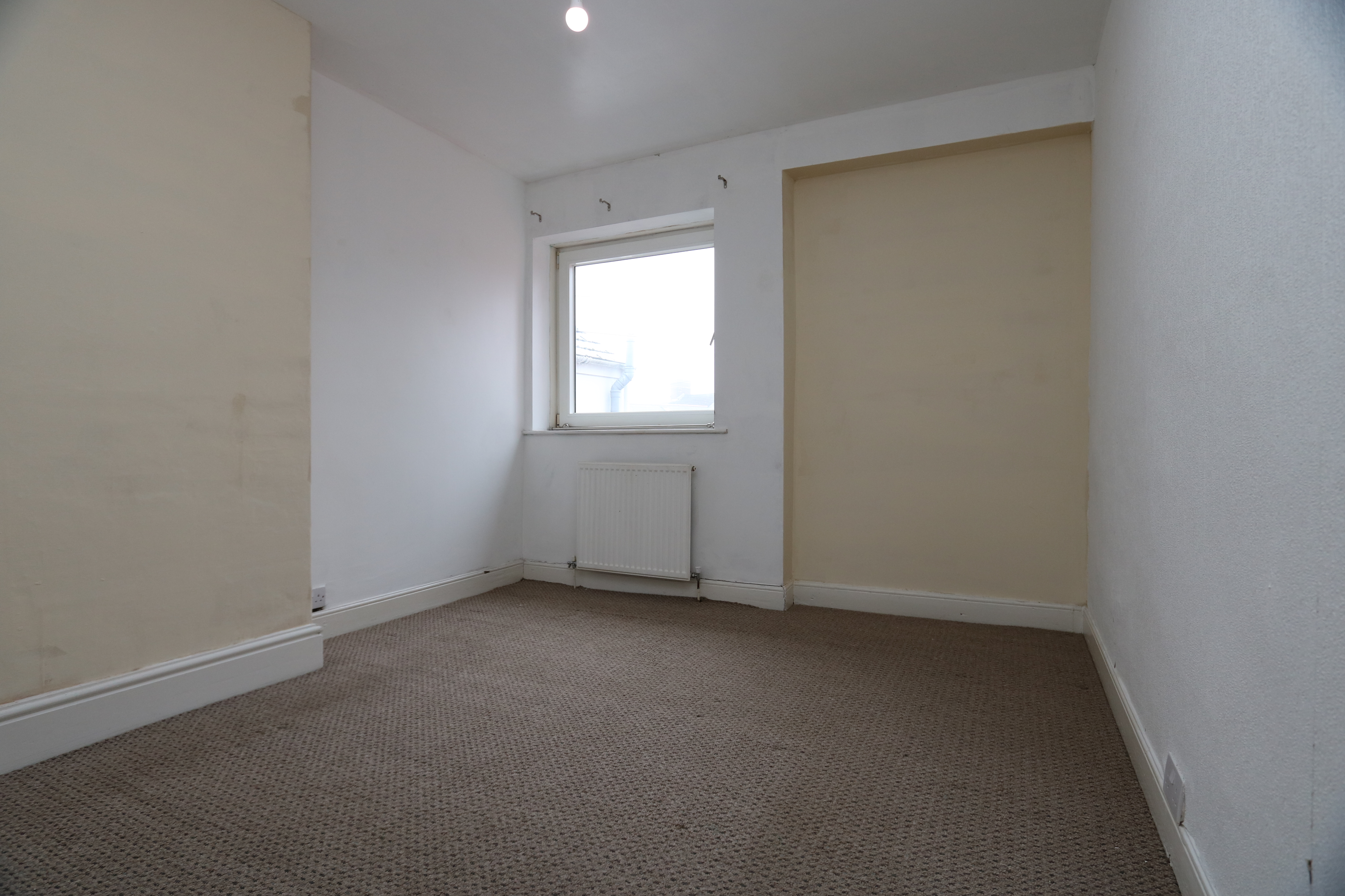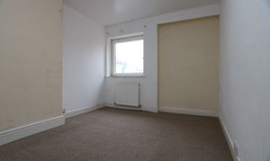 Carpeted with wallpapered walls and a smooth ceiling. A rear aspect window and a radiator. Measurements have been taken into the recesses either side of the chimney breast.
