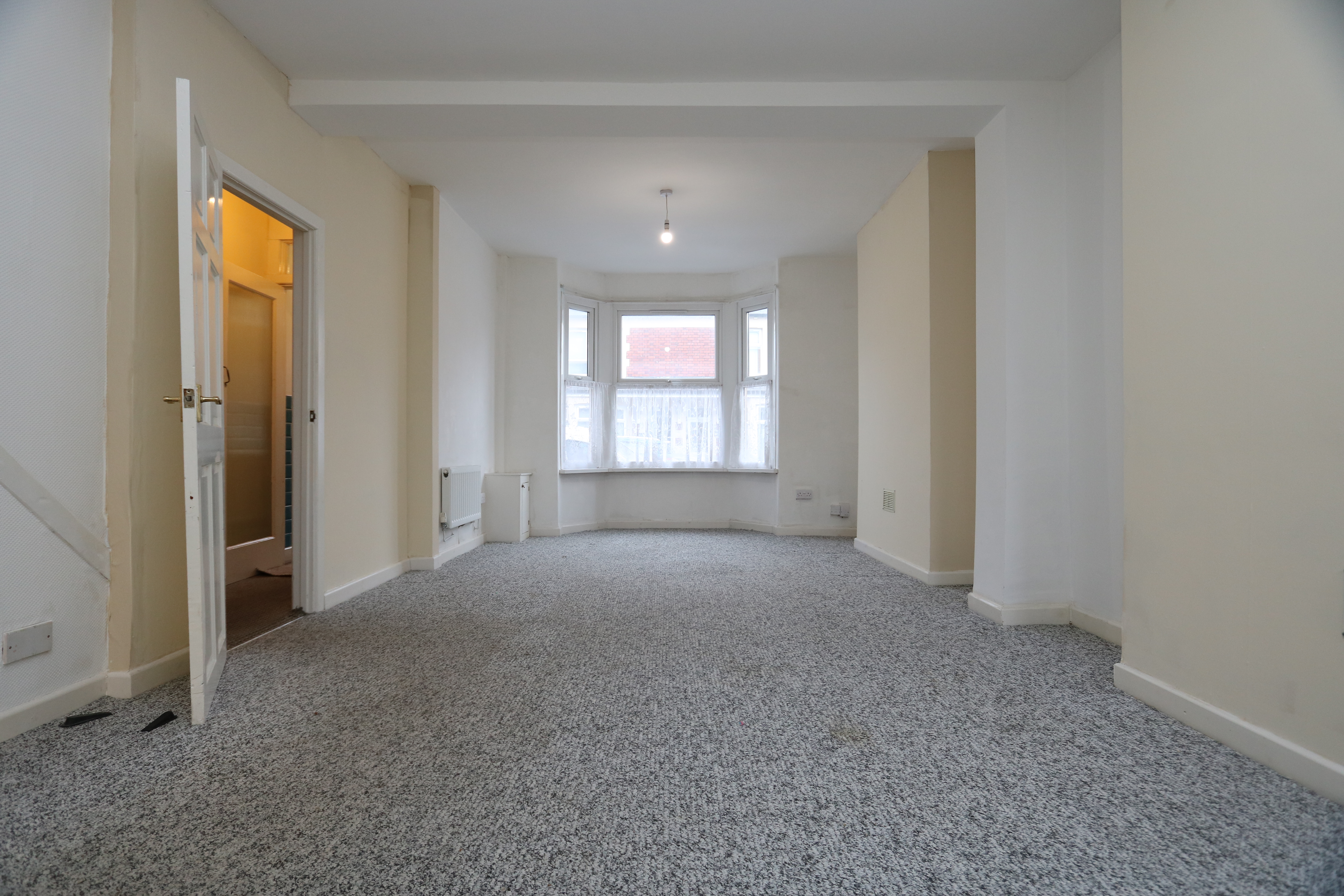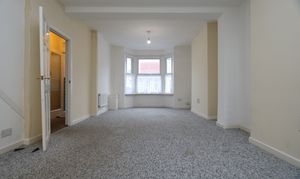 Carpeted with smooth walls and a smooth ceiling. A large front aspect bay window, a rear aspect window, two radiators and a door giving access to an understairs storage cupboard. Open to the kitchen. Measurements have been taken into the bay and into the recesses either side of the chimney breast.