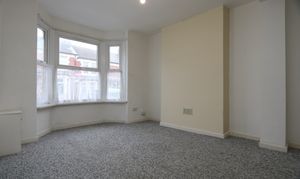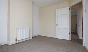 Carpeted with smooth walls and a smooth ceiling. A front aspect window and a radiator. Measurements have been taken into the recesses either side of the chimney breast.