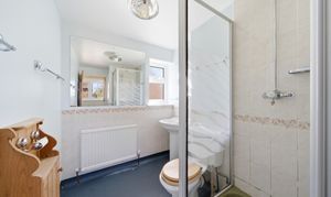 Upstairs, the property offers three well proportioned bedrooms, including a principal bedroom with en-suite, alongside an additional large shower room, providing flexibility for family living. There is also a substantial first floor storage area, adding further versatility to the accommodation.