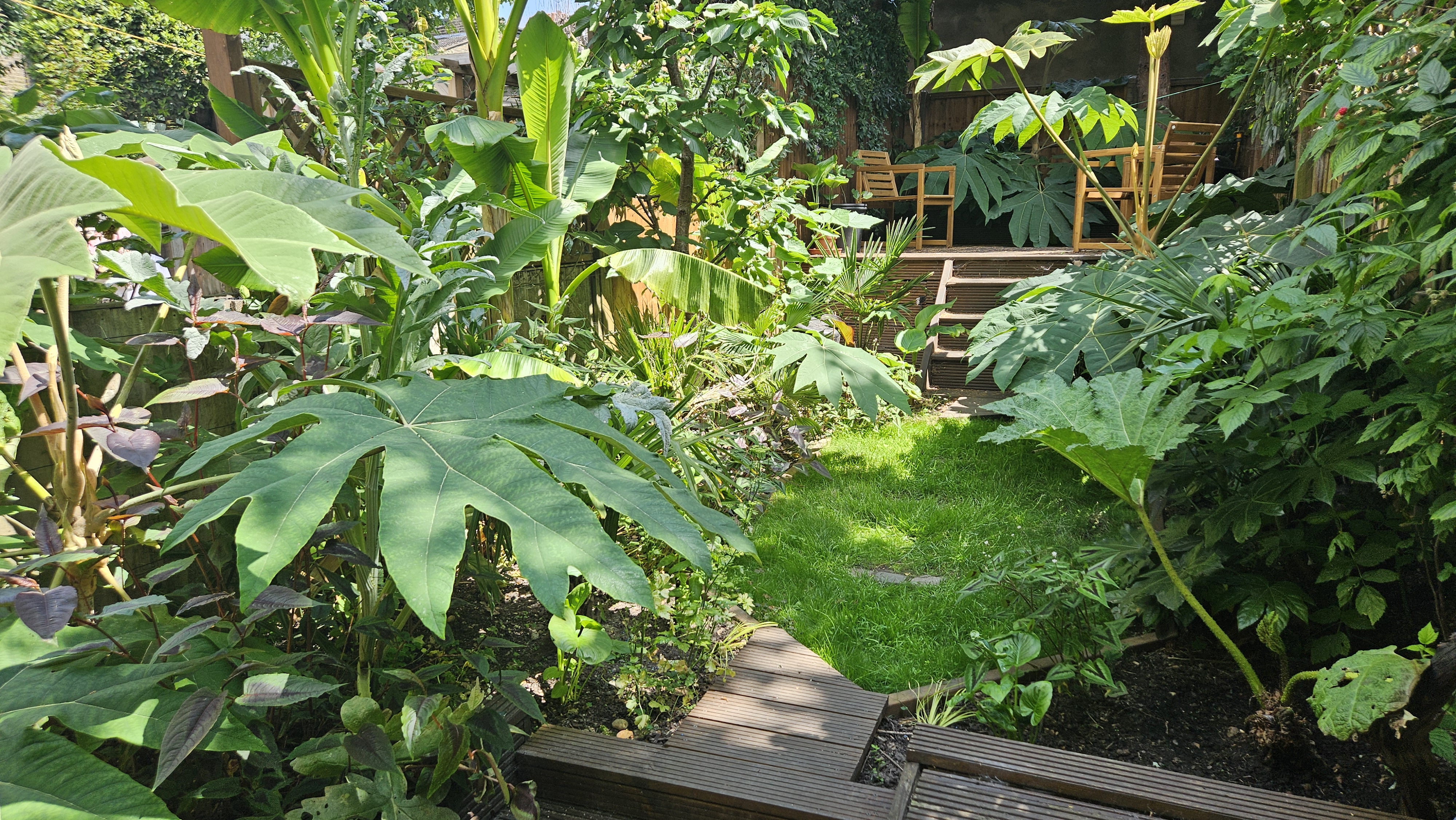 ‘The garden brings us a lot of joy and gets sun throughout the day, allowing you to enjoy a morning coffee on the smaller decking and an evening drink at the back while staying in the sunlight.