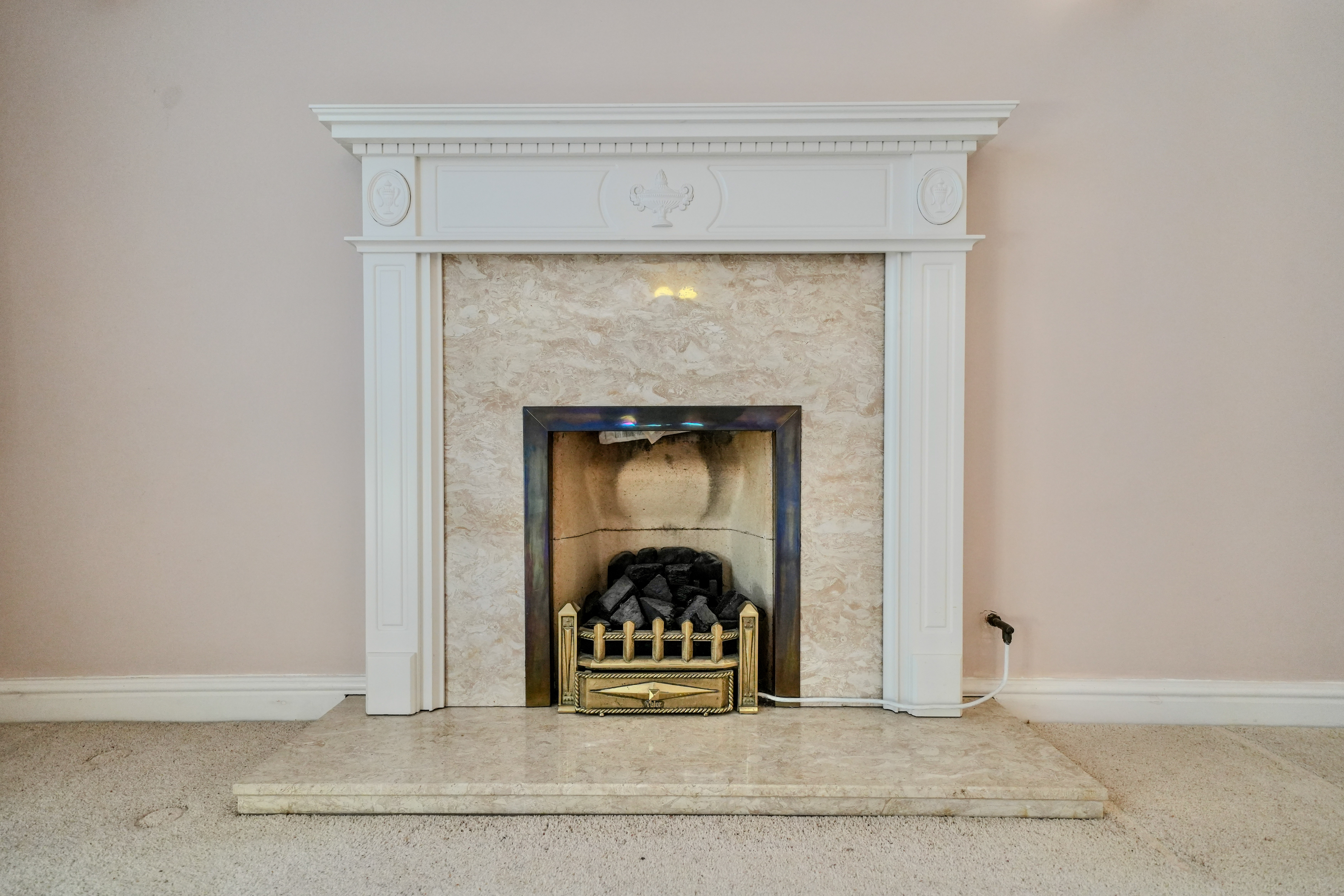 Dual aspect room with uPVC double glazed window to the front and side aspect, carpeted flooring, two wall mounted radiators, wall lights and gas fire.