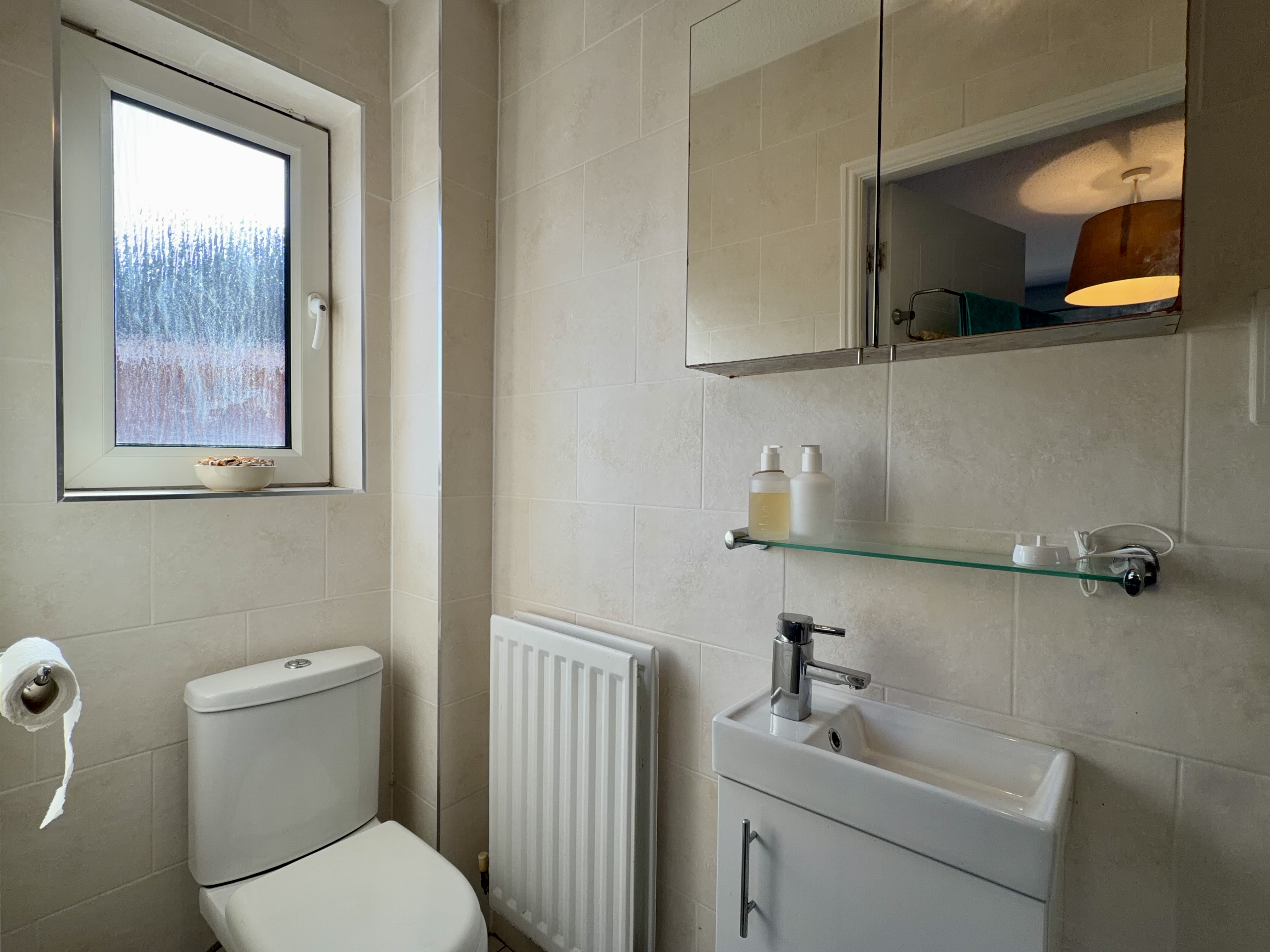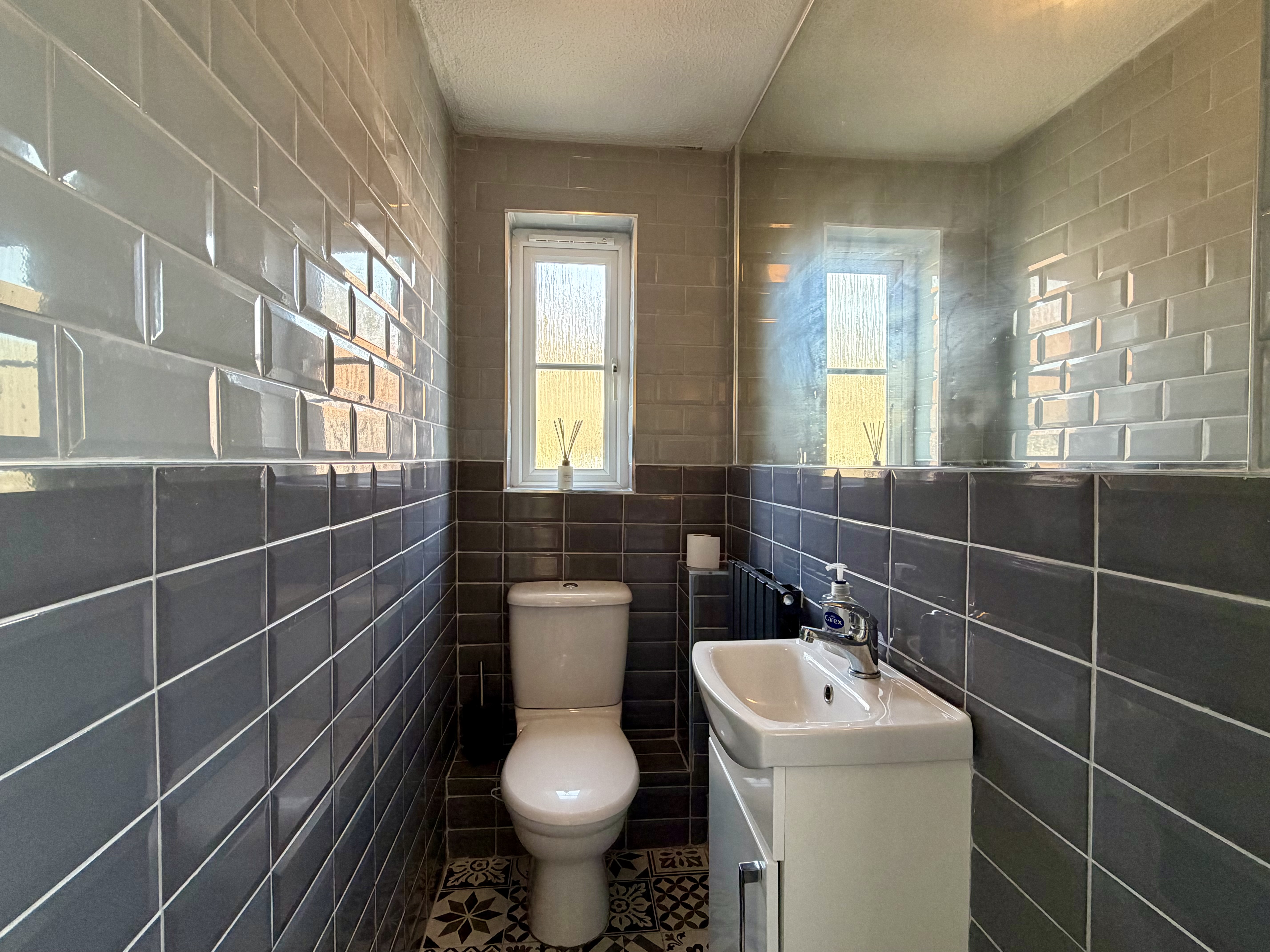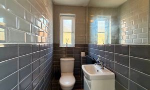 - Modern downstairs WC with subway tiling and large fitted mirror