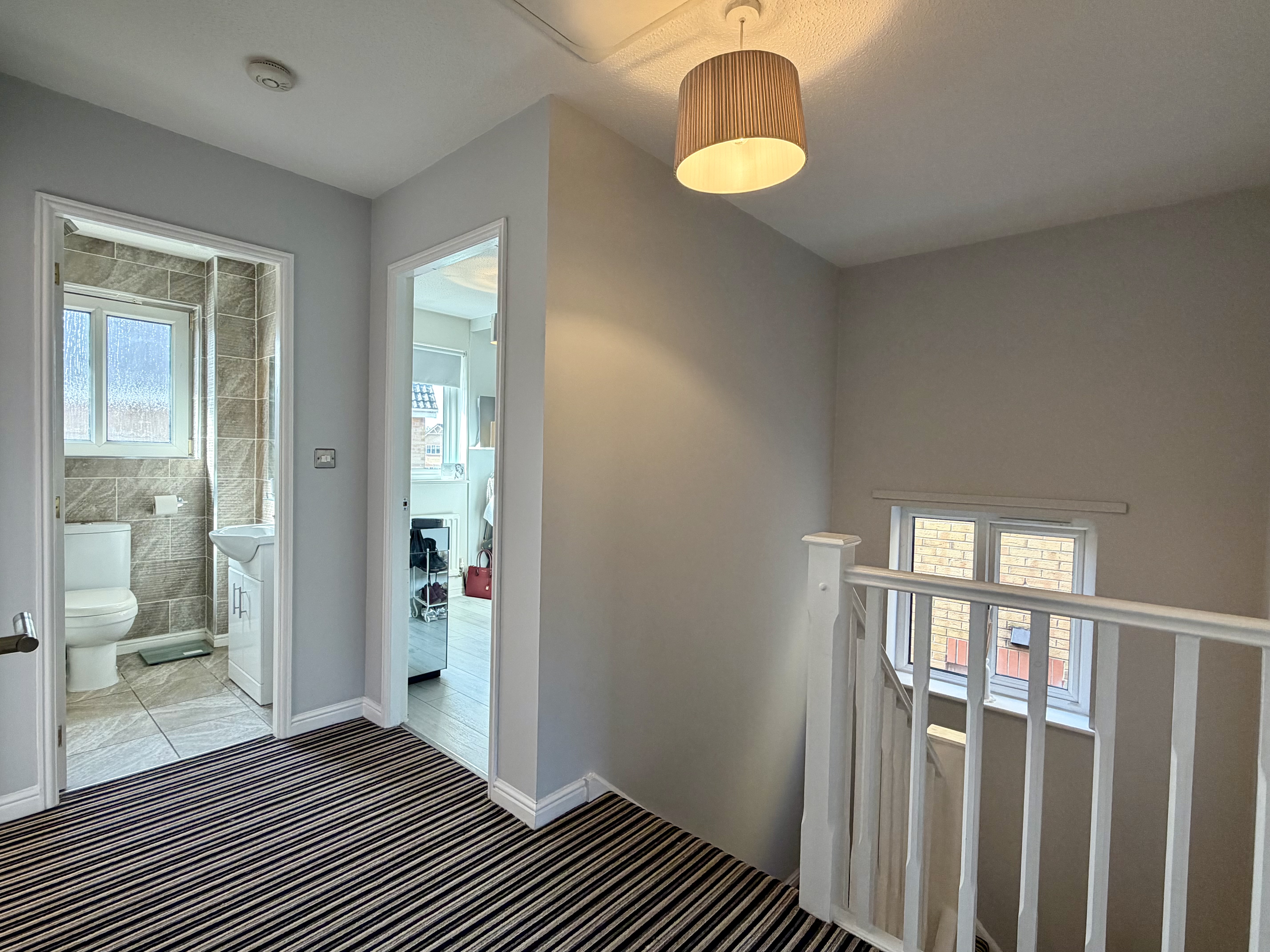 Upstairs, the upper landing provides access to a useful storage cupboard and the loft. All bedrooms are well proportioned, with the fourth bedroom currently utilised as a dressing room. The master bedroom benefits from an elegant en-suite shower room, while the family bathroom is beautifully finished with full tiling, a shower over the bath and a large fitted mirror. This property also offers gas central heating courtesy of a modern combo boiler and double glazing throughout, ensuring comfort and efficiency all year round.