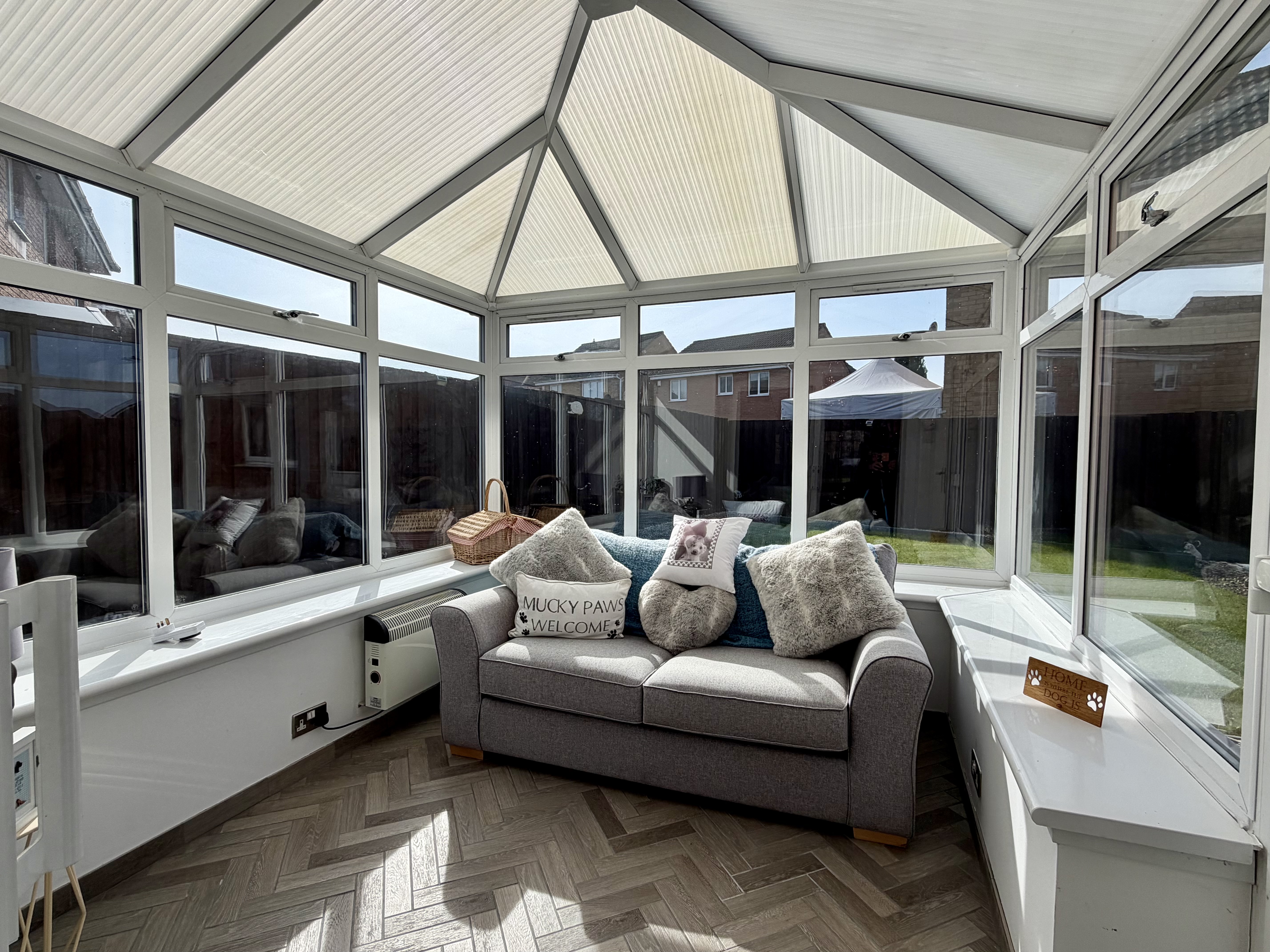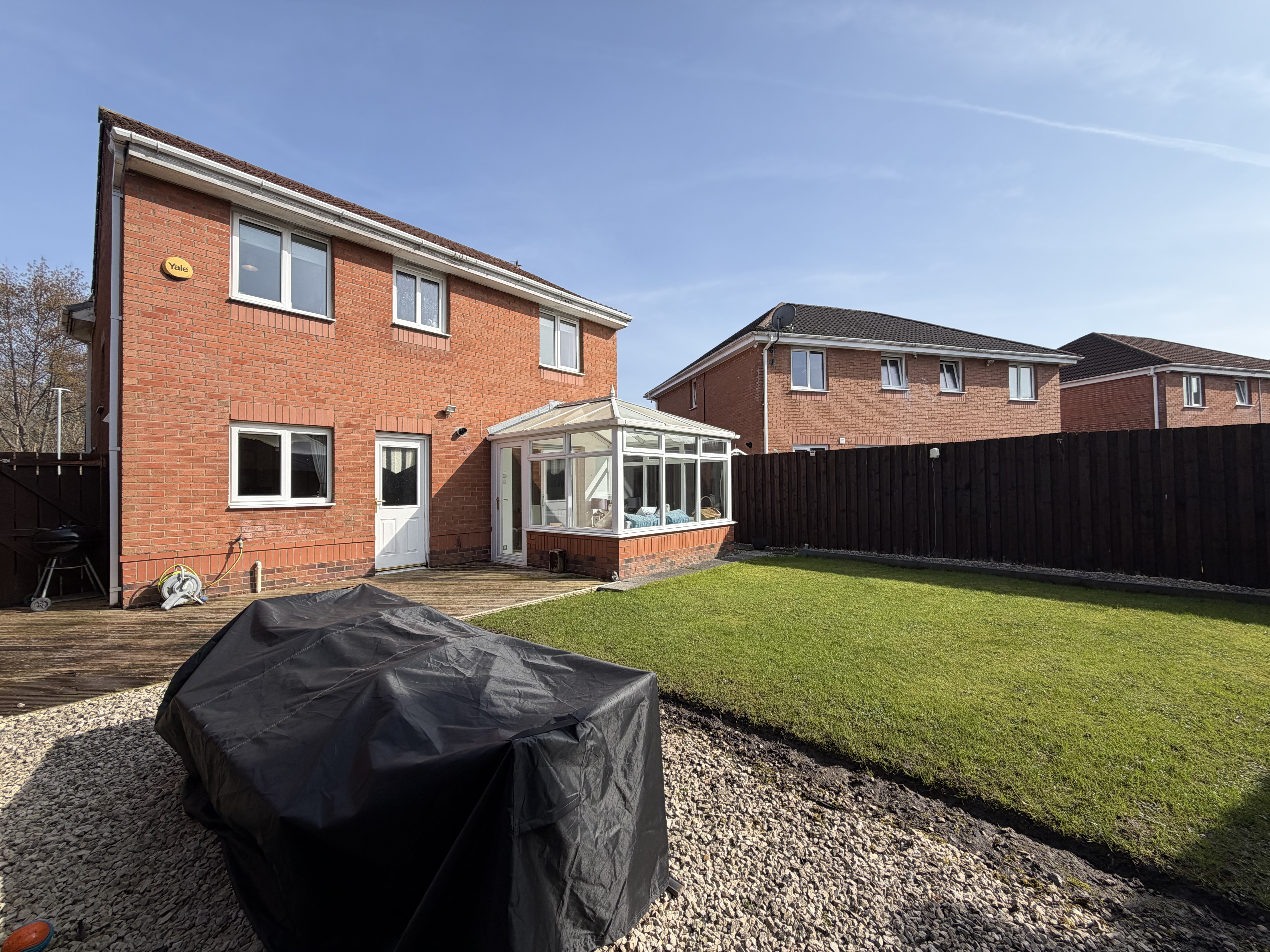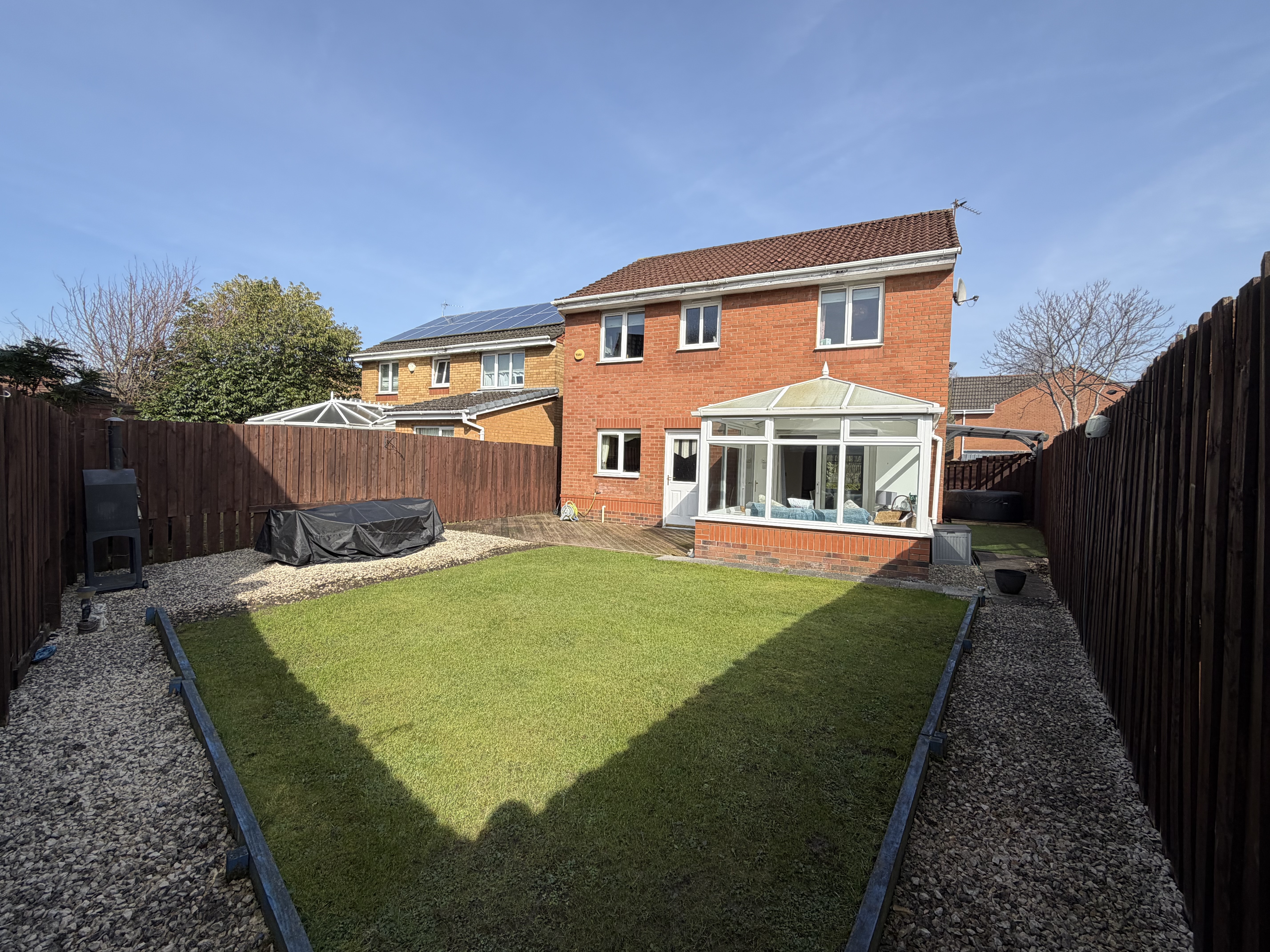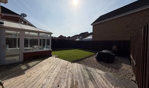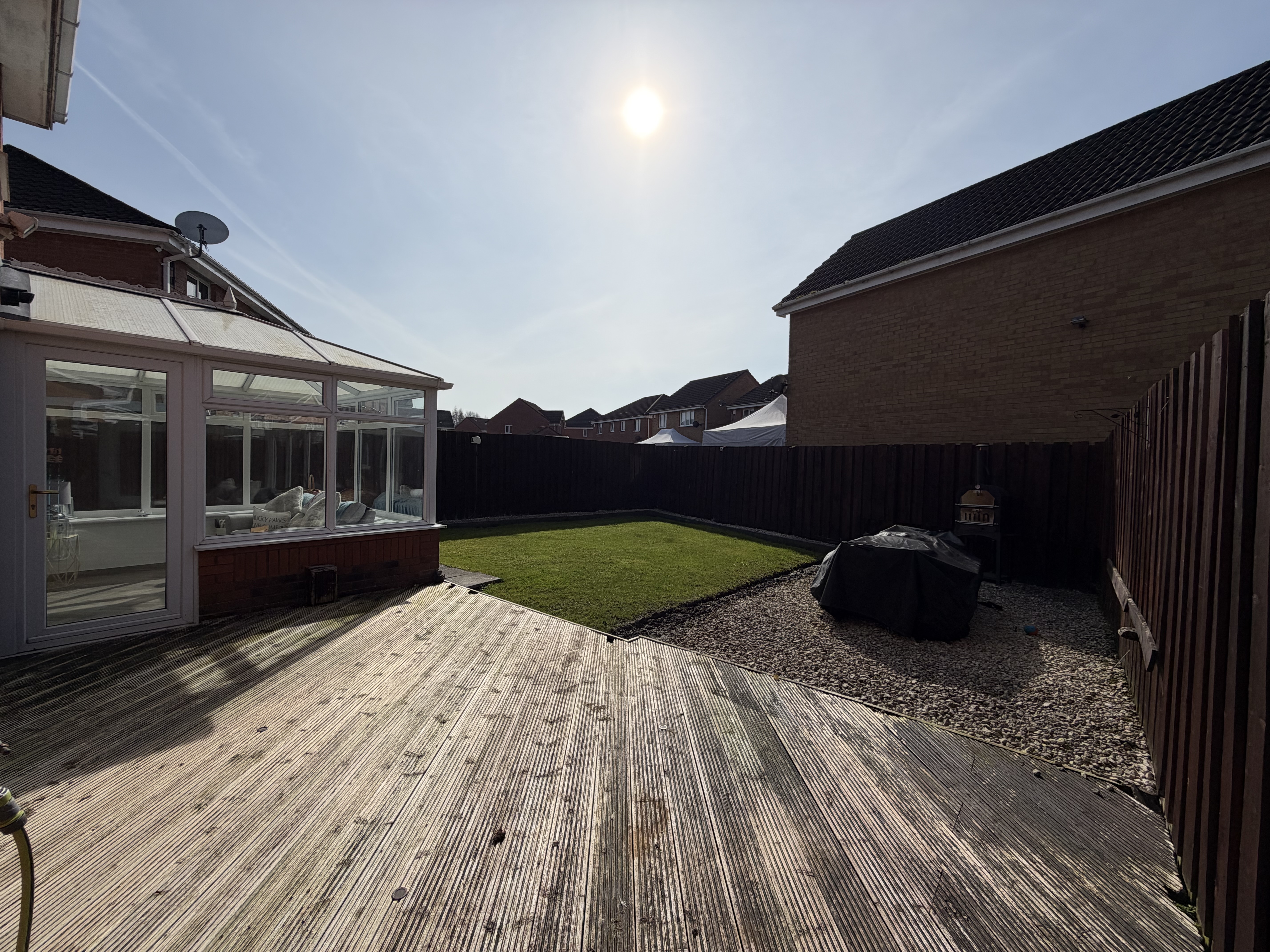 - Spacious and fully enclosed back garden with secluded space for hot tub