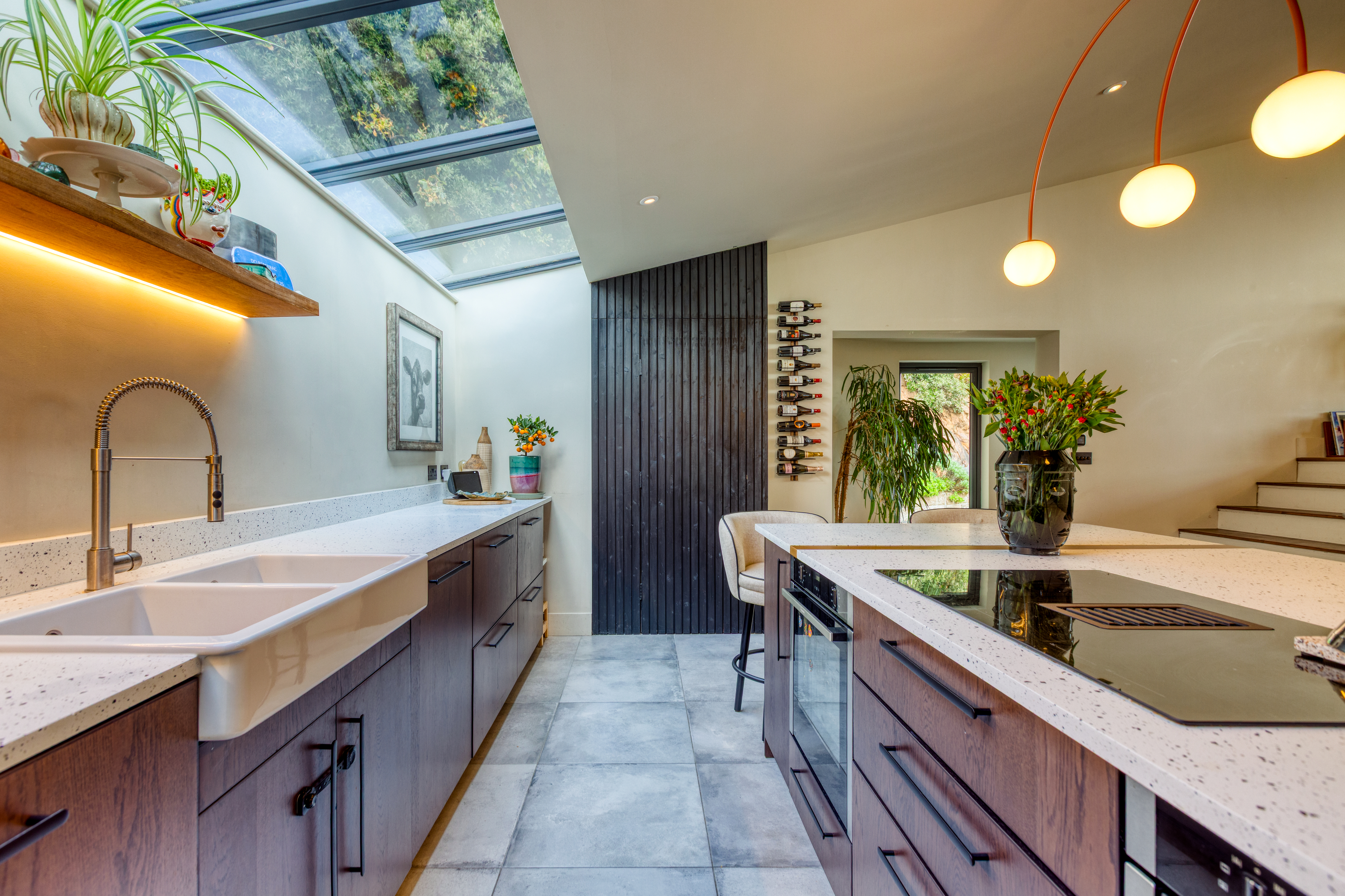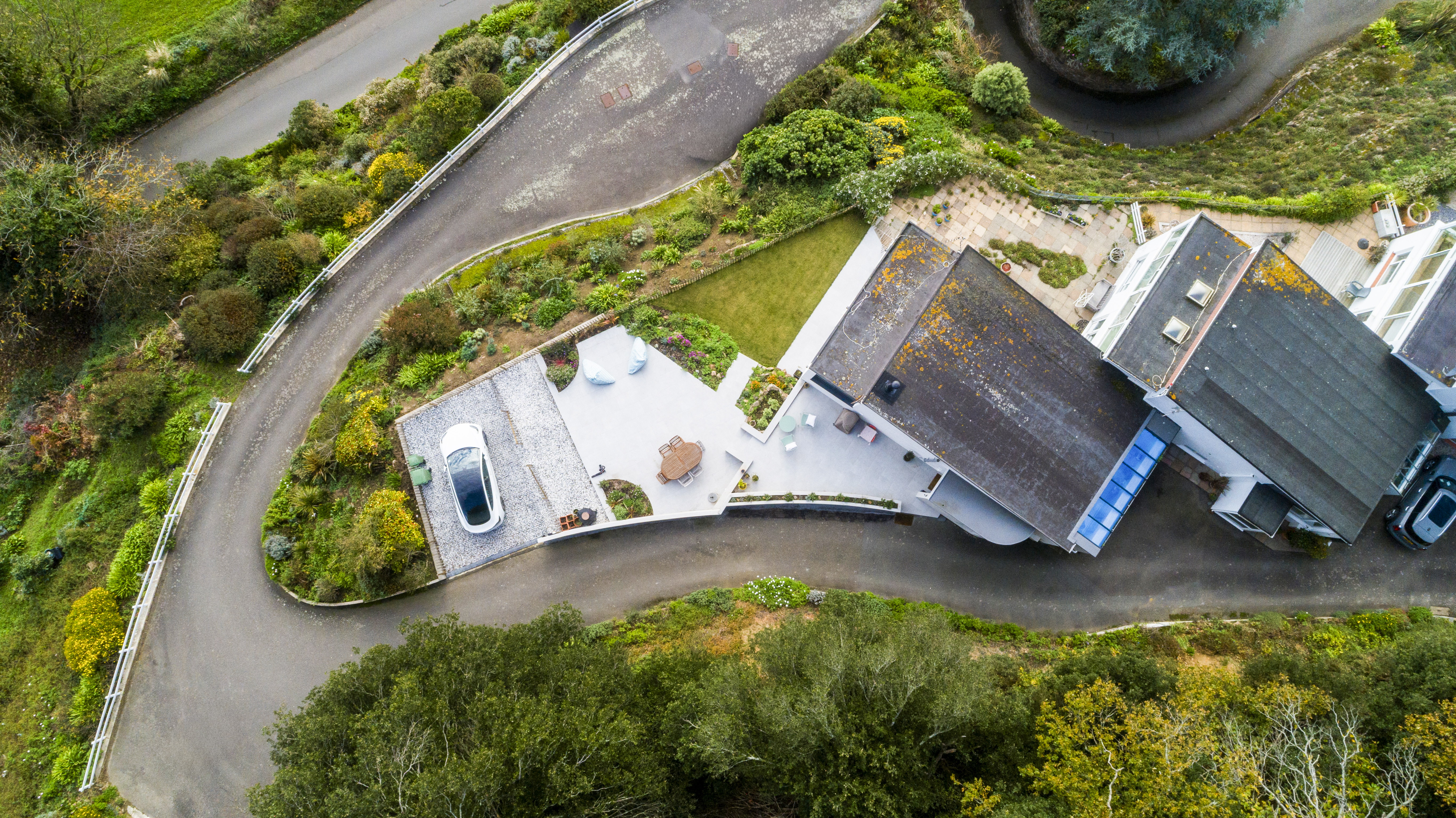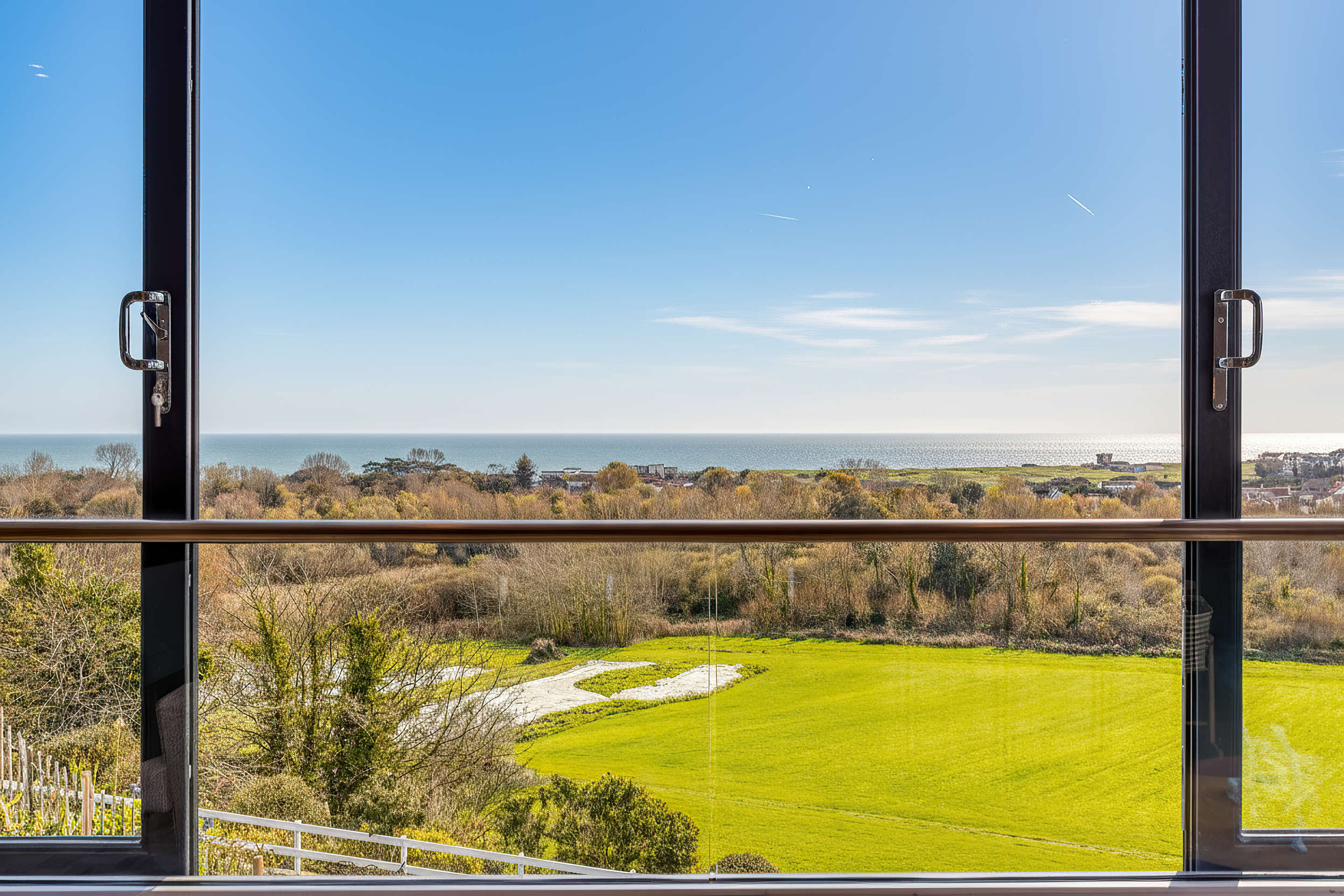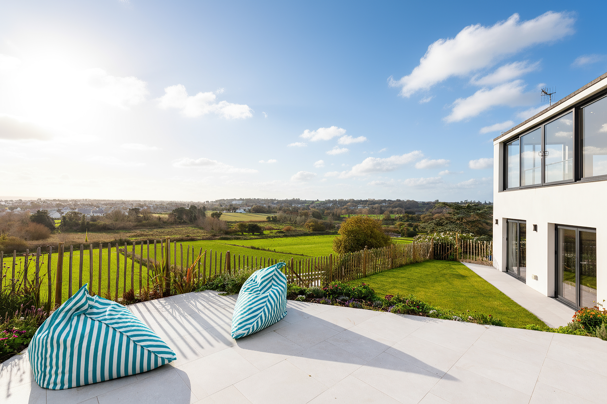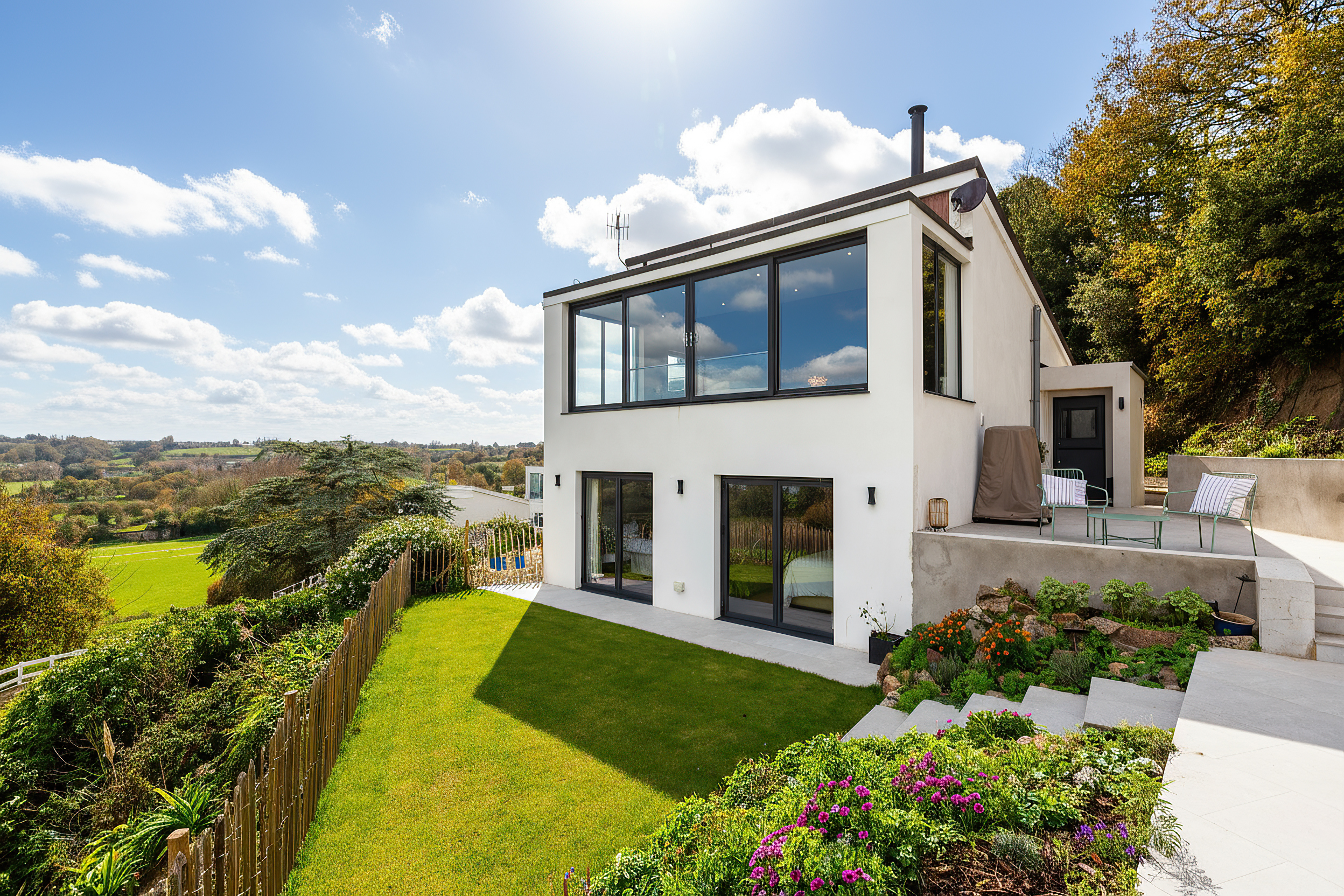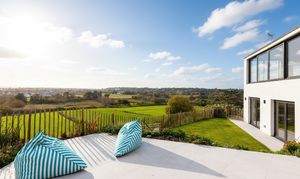 With sections of lawn and generous patio areas, it provides an ideal setting for enjoying all-day sun and taking in the spectacular views across the surrounding countryside and towards the coast.