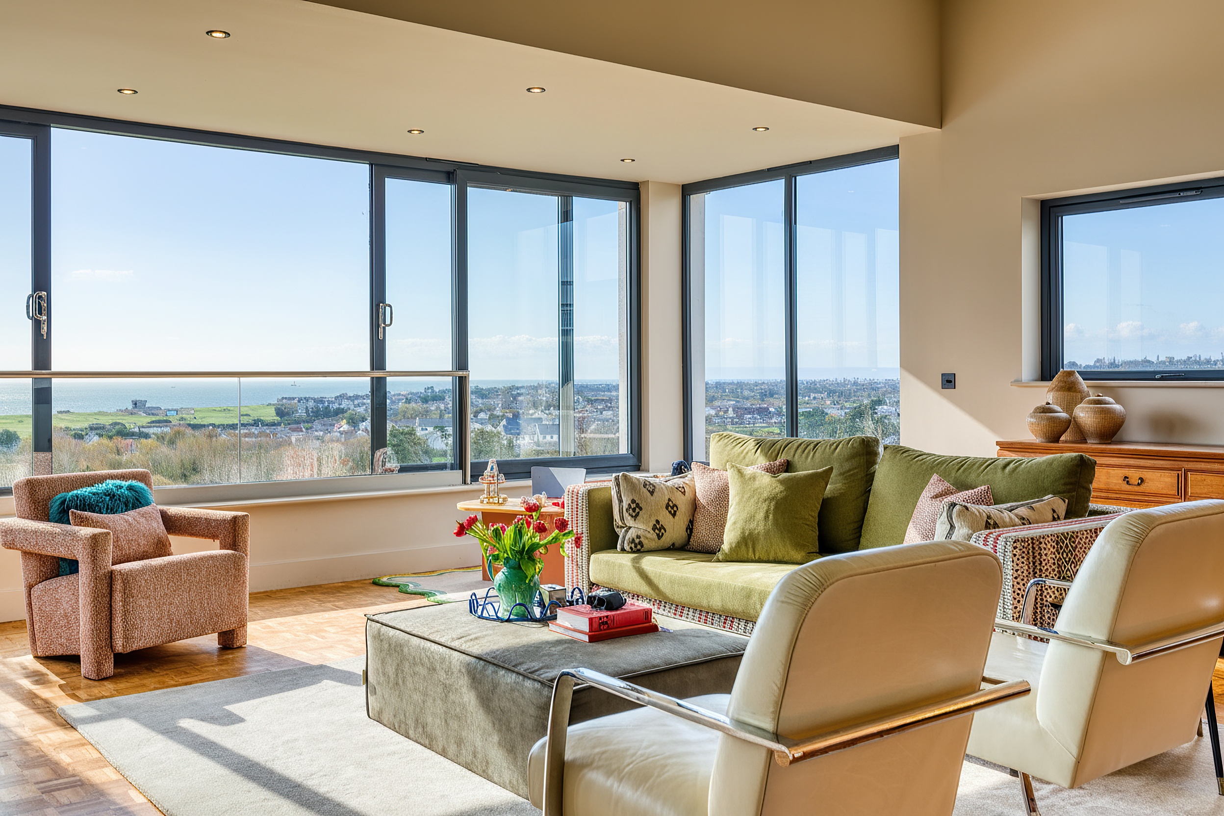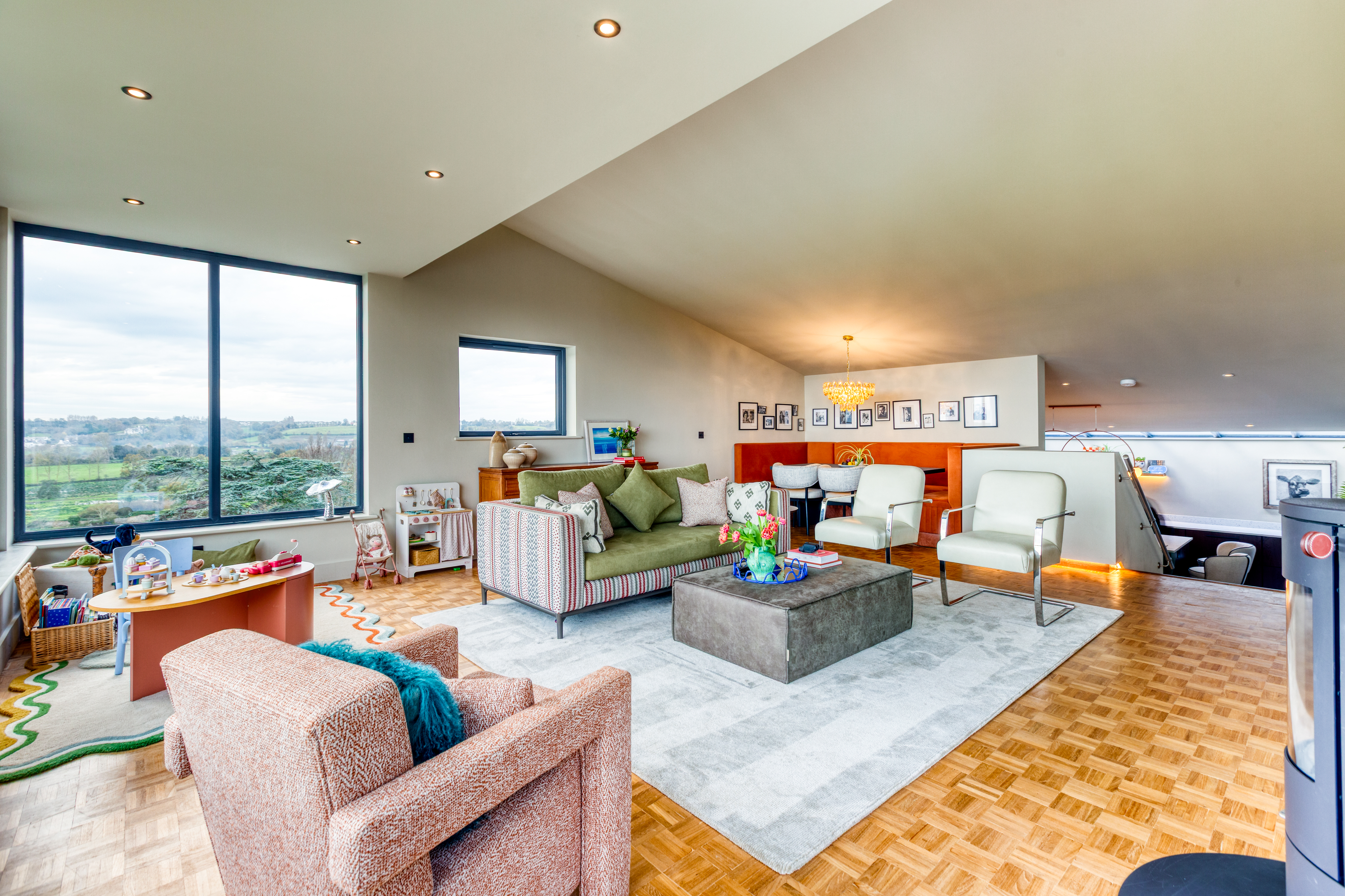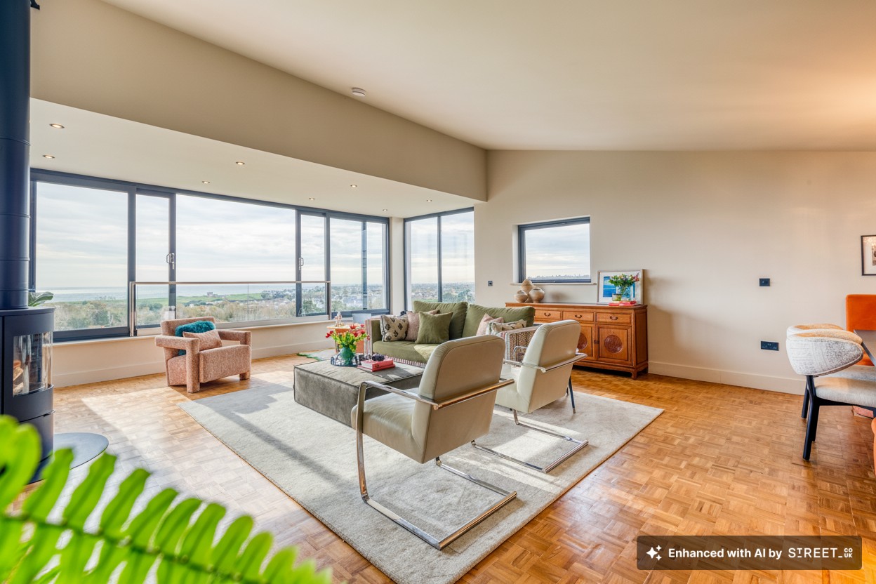 - Beautiful living/dining room with views across the countryside as far as the coast
