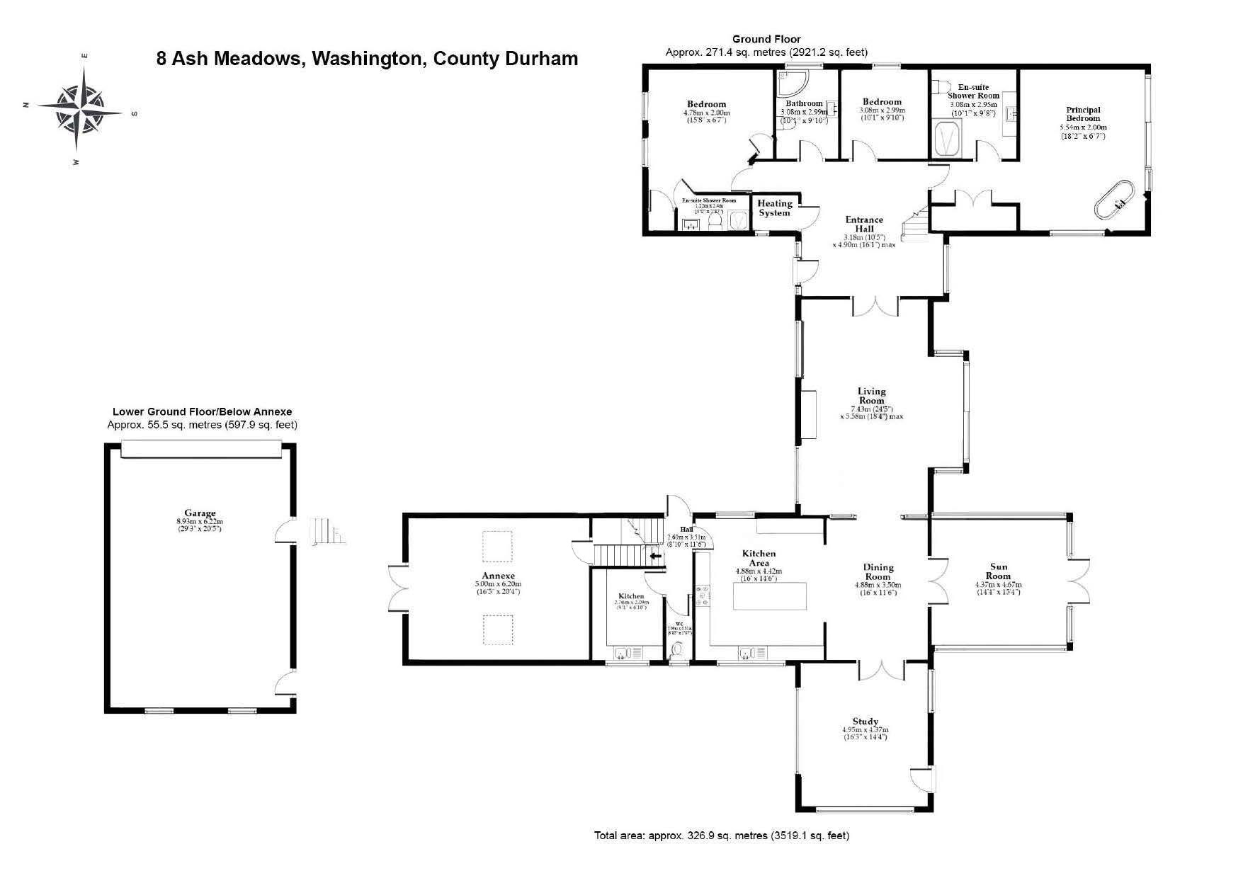 Entrance Hall | Kitchen/Dining Room | Sunroom | Study | Living Room | Principal Bedroom with En-Suite Shower Room | Second Double Bedroom with En-Suite Shower Room | Double Bedroom | Family Bathroom | Kitchen | WC