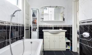 Ascend the stairs to discover the vast principle bedroom, a true sanctuary in which to unwind. Complete with an en-suite bathroom, this private retreat promises a haven of tranquillity. An additional bedroom provides flexibility for growing families or those seeking a designated workspace.
