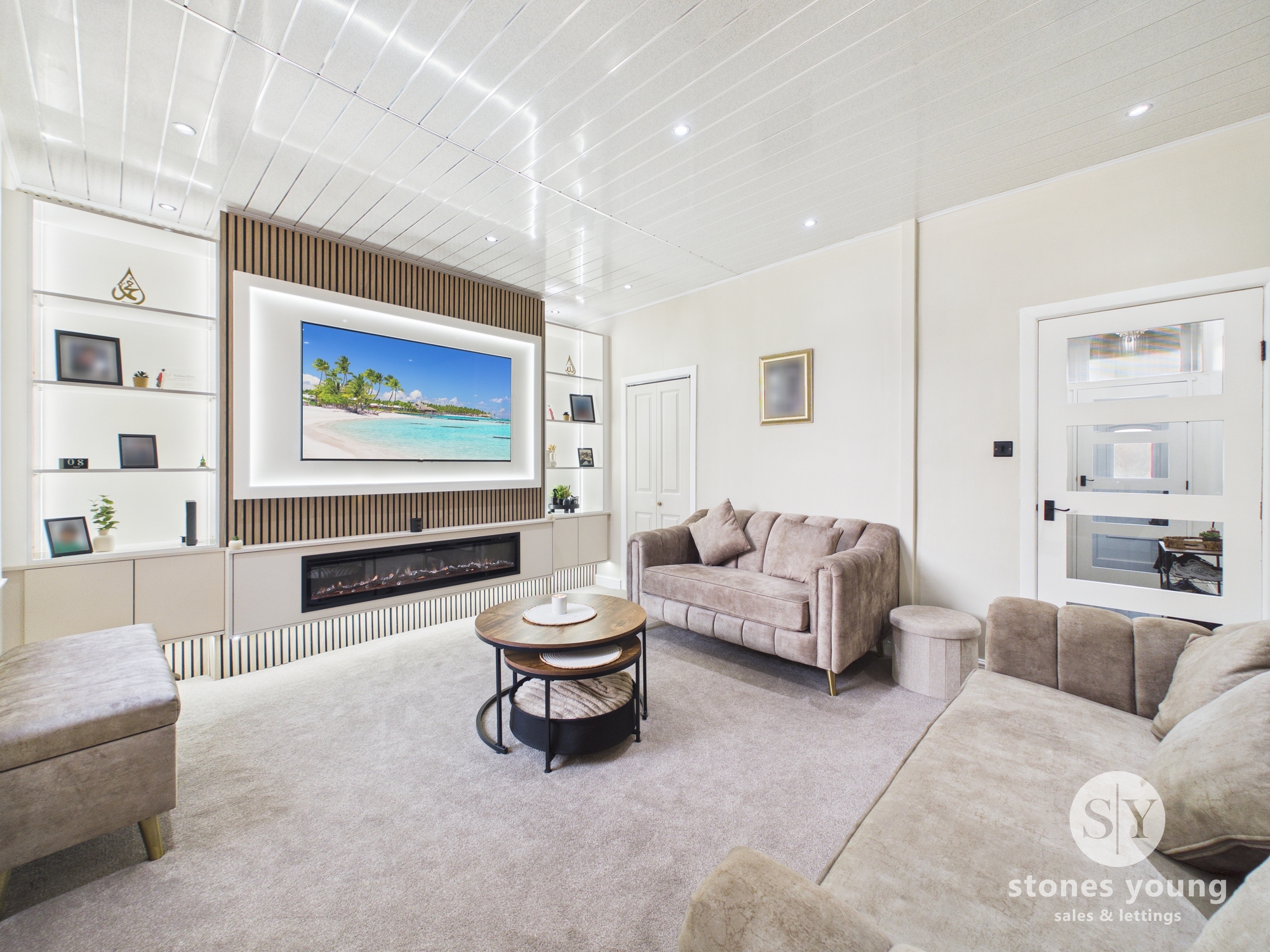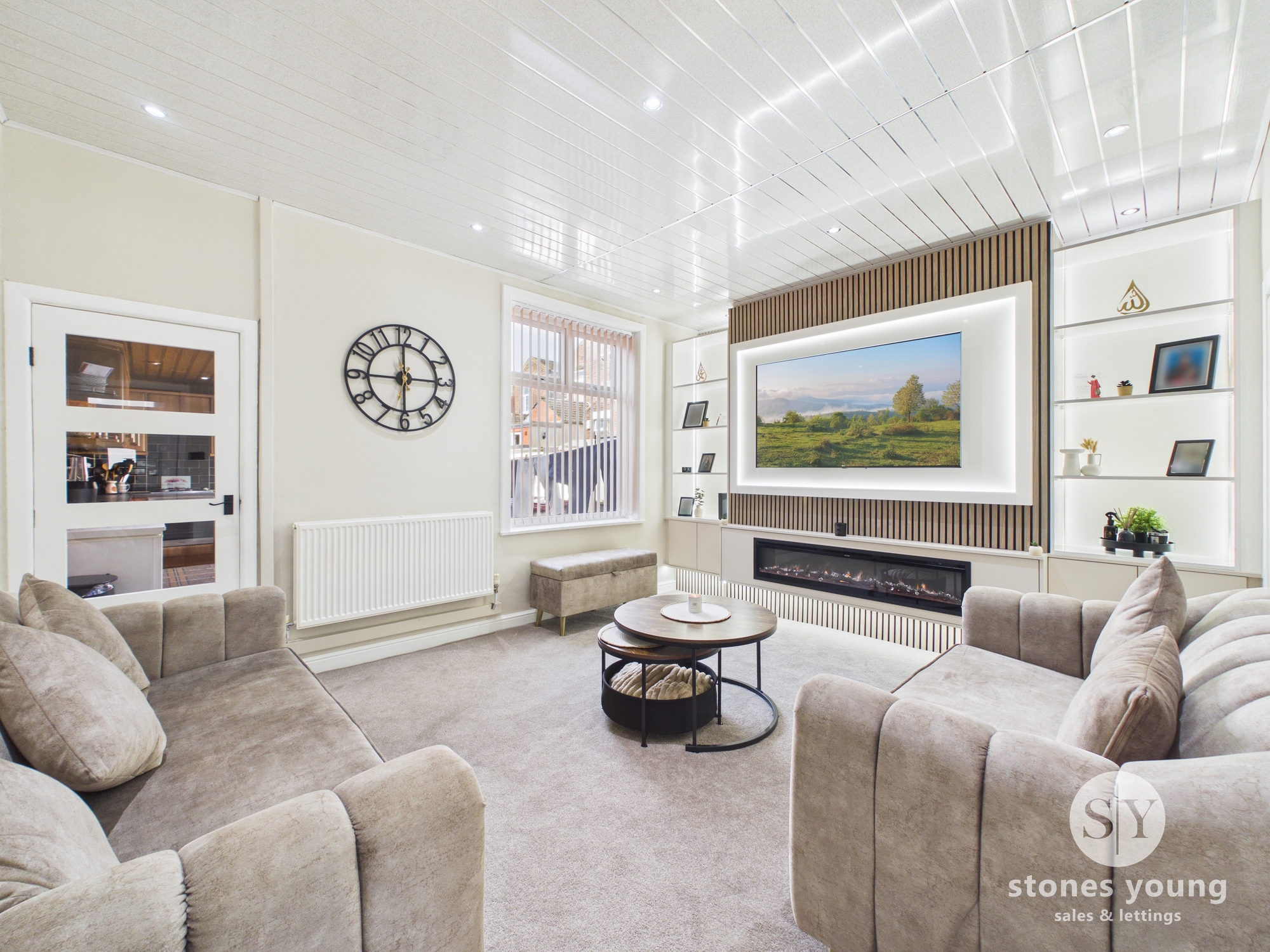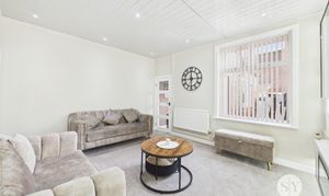 Step inside through the welcoming hallway, neutrally decorated to create an inviting first impression, and discover a thoughtfully arranged interior that perfectly caters to contemporary lifestyles. The first reception room radiates comfort and warmth, featuring a sleek electric fire - ideal for relaxing evenings. Move through to the standout second reception room, a true showpiece of the home, boasting generous proportions, a striking media wall with elegant panelling, and a modern electric fire that sets the tone for memorable gatherings and effortless entertaining. The kitchen is a chef’s delight, offering modern finishes, ample cupboard space for all your culinary essentials, and room for every appliance required for daily convenience.