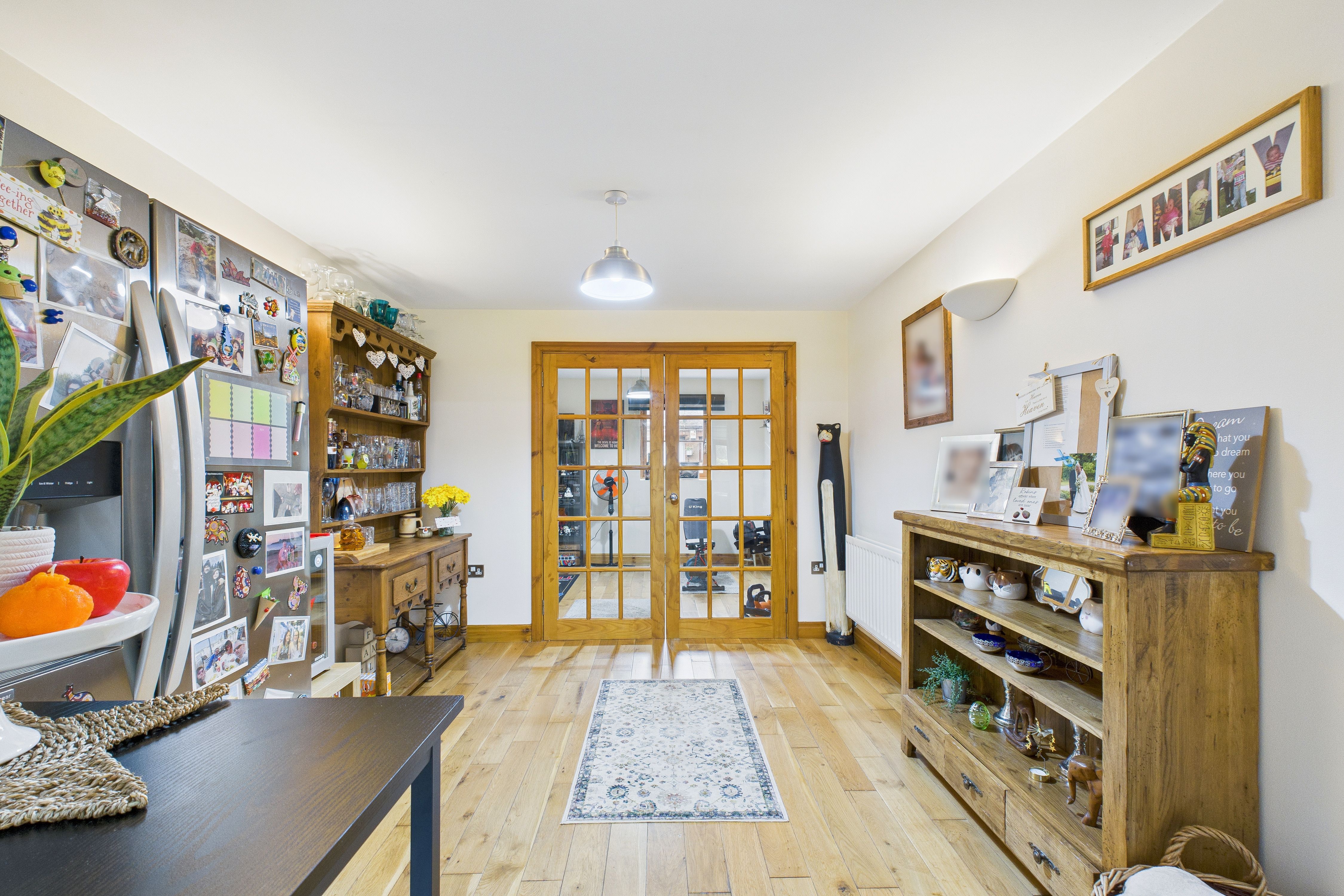 The heart of the home beckons with a huge country-style kitchen, offering ample storage and room for a family-sized dining table. An adjoining utility room serves as a practical addition, while a versatile space adjoining the kitchen awaits – ideal for a dining or breakfast area, double doors lead to an additional room personal with endless possibilities, reflecting the flexibility and adaptability of this remarkable property.
