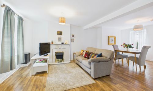 Stepping inside, you are welcomed by a hallway that sets the tone for the homely ambience that pervades the residence. The hallway gracefully leads to a spacious and charming lounge, bathed in natural light streaming through its dual aspect windows, creating a warm and inviting atmosphere ideal for moments of cosy gatherings or peaceful solitude.